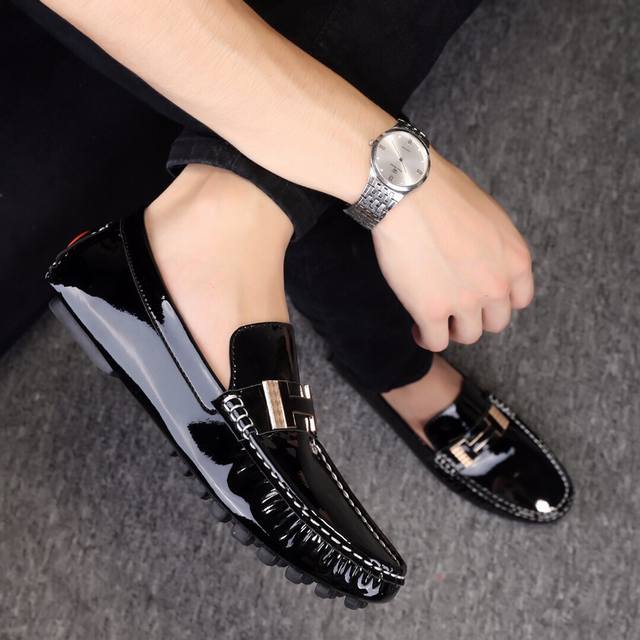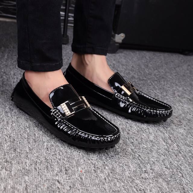 实价 爱马仕 官方新款,意大利名模贵族们的棒棒款,时尚界的佼佼者,无可超越,市场高品质精品豆豆男鞋。明星周杰伦同款,原单正品,采用进口原版牛皮+原版黑色牛皮内里