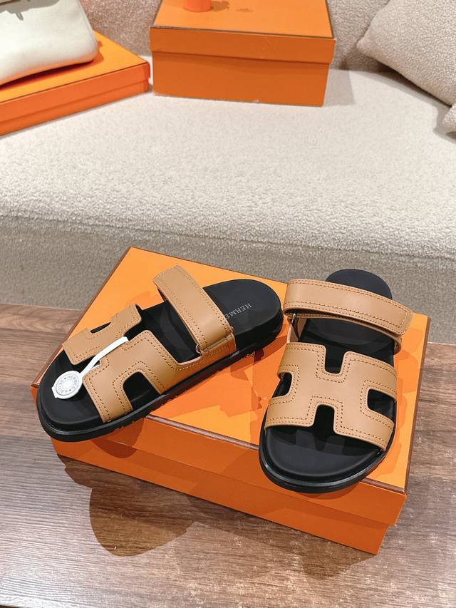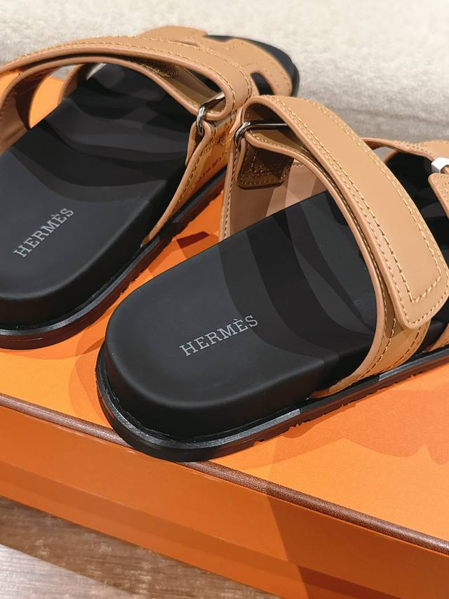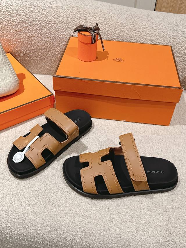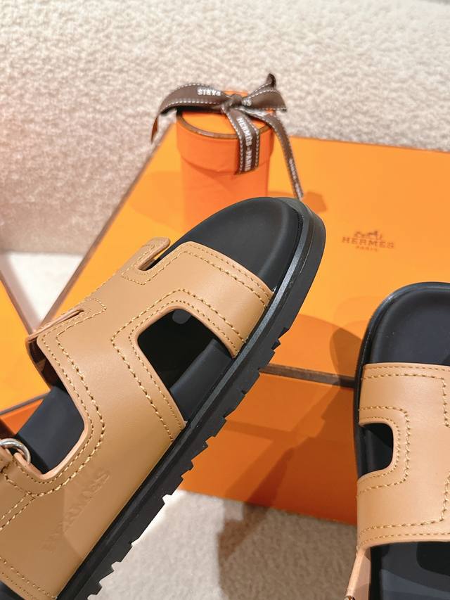 Hermers 爱马仕2024春夏新款度假风拼色懒人沙滩女鞋 H家糖果色情侣款平底圆头露趾二舅凉拖鞋