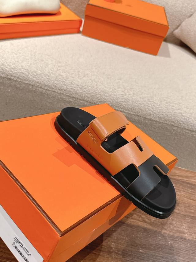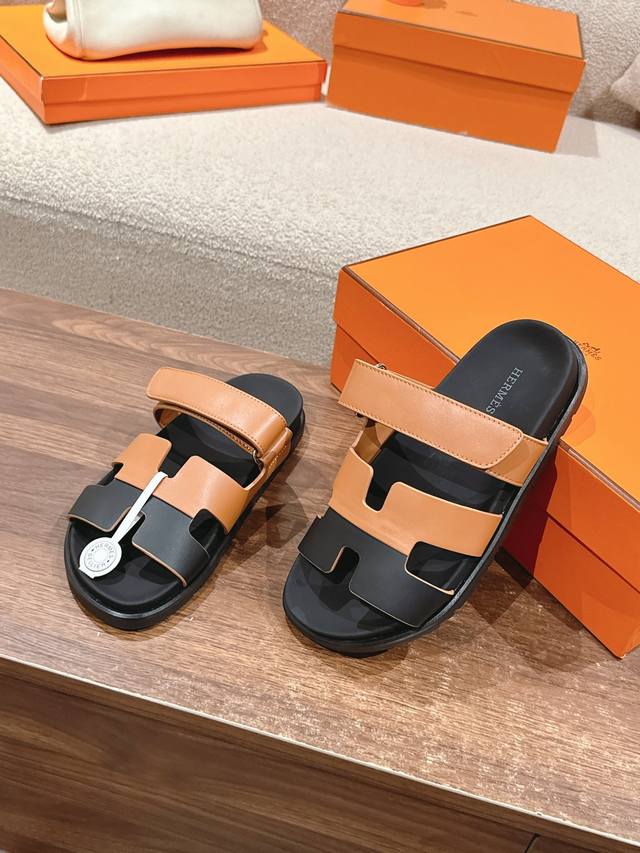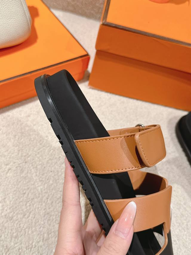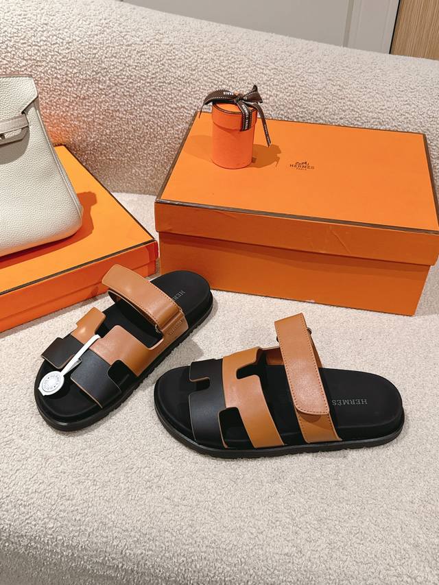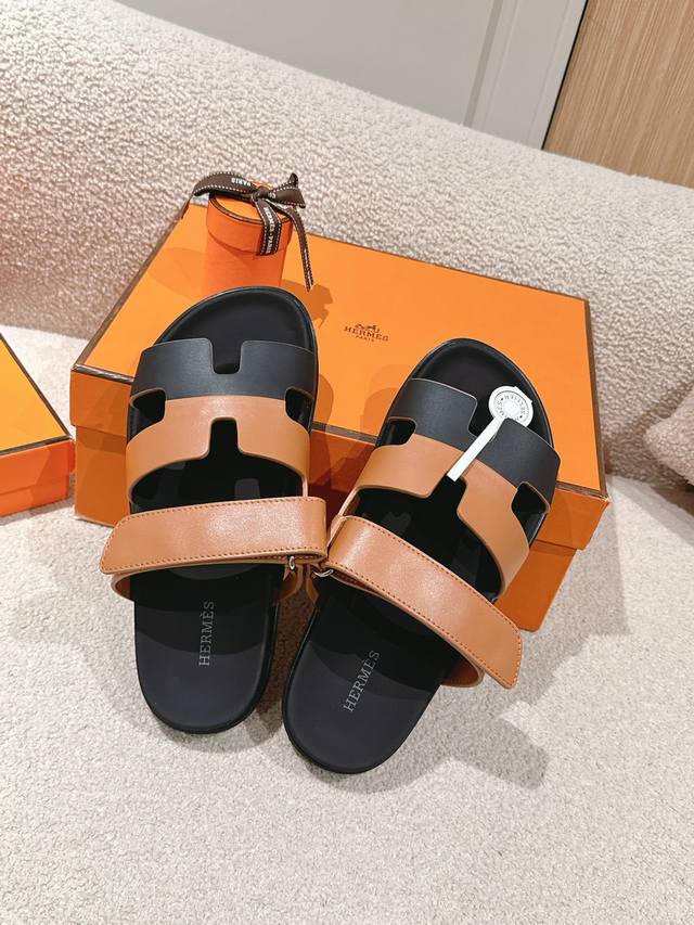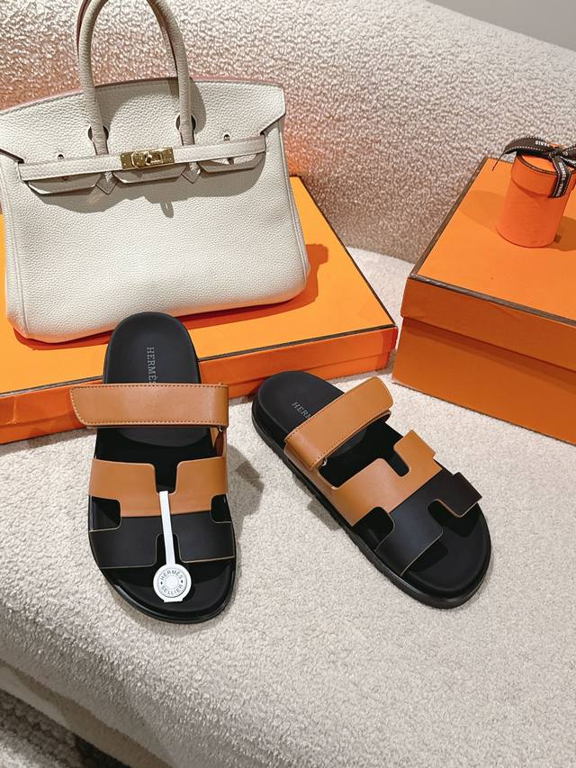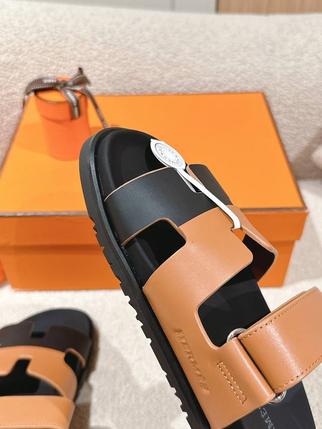 Hermers 爱马仕2024春夏新款度假风拼色懒人沙滩女鞋 H家糖果色情侣款平底圆头露趾二舅凉拖鞋