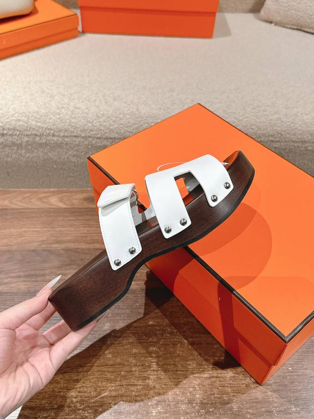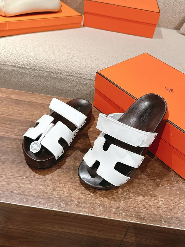 Hermers 爱马仕2025春夏情侣新款 Kos 度假风拼色懒人沙滩鞋 H家糖果色厚底圆头铆钉露趾二舅凉拖鞋