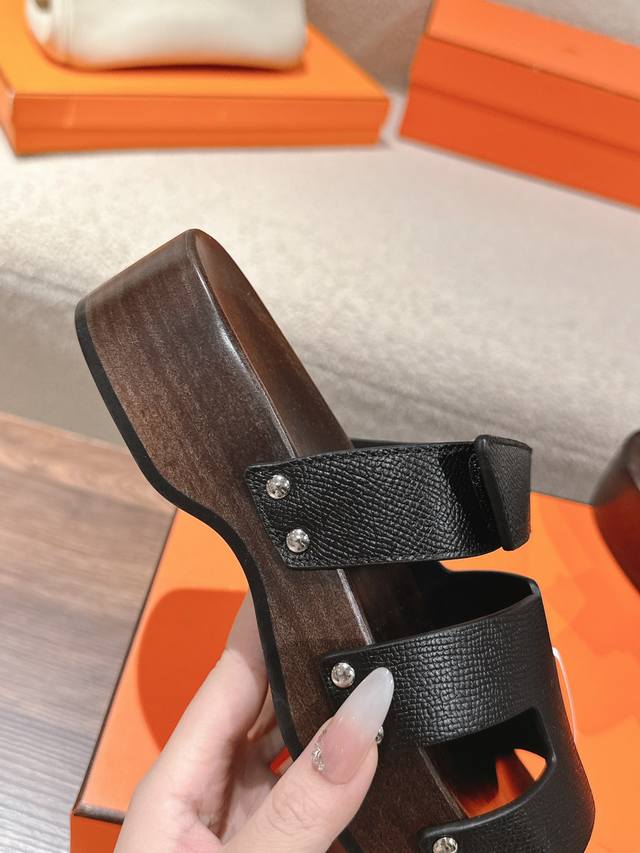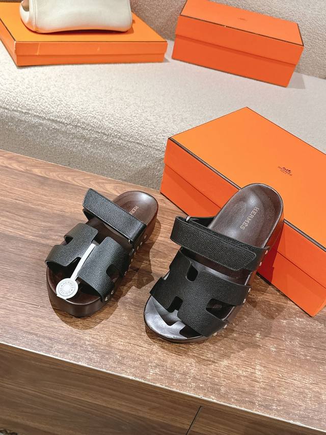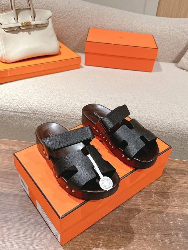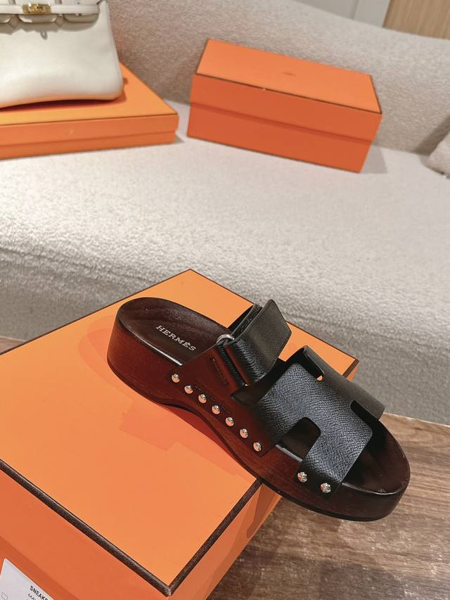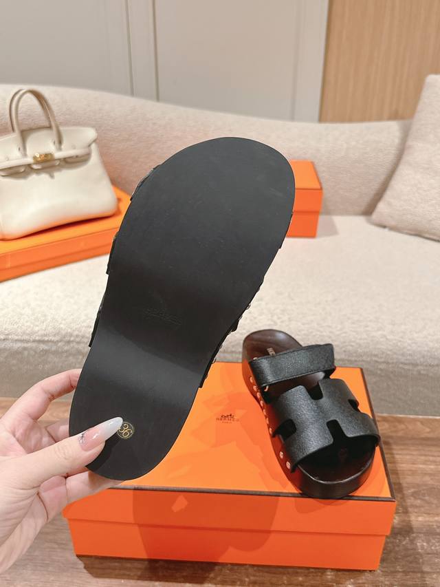 Hermers 爱马仕2025春夏情侣新款 Kos 度假风拼色懒人沙滩鞋 H家糖果色厚底圆头铆钉露趾二舅凉拖鞋