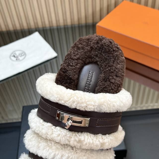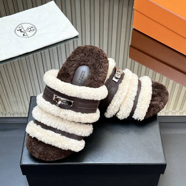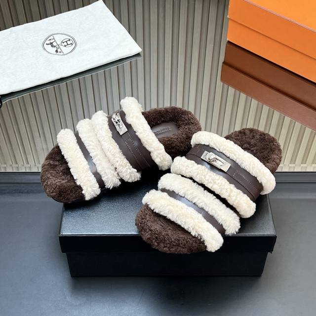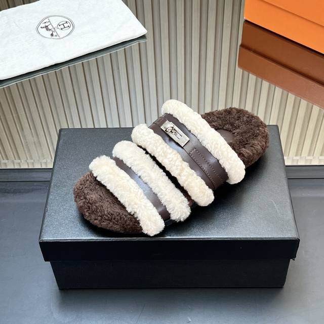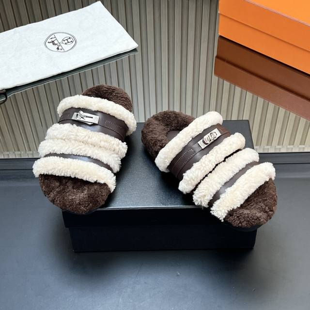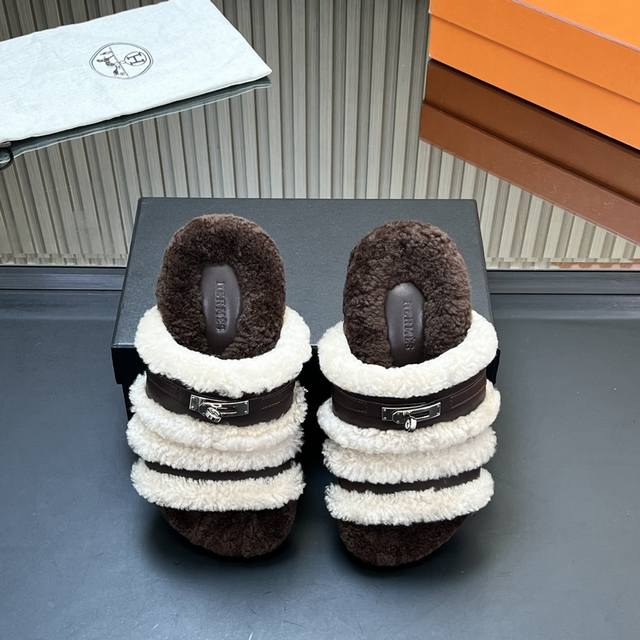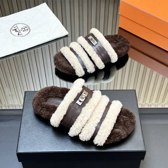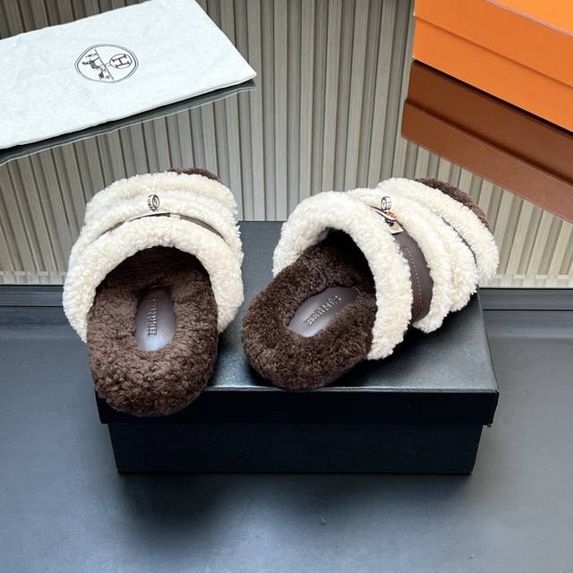 高品质!*爱马仕皮毛一体卷糕毛二舅拖 今年面料均选用A+皮毛一体卷糕毛