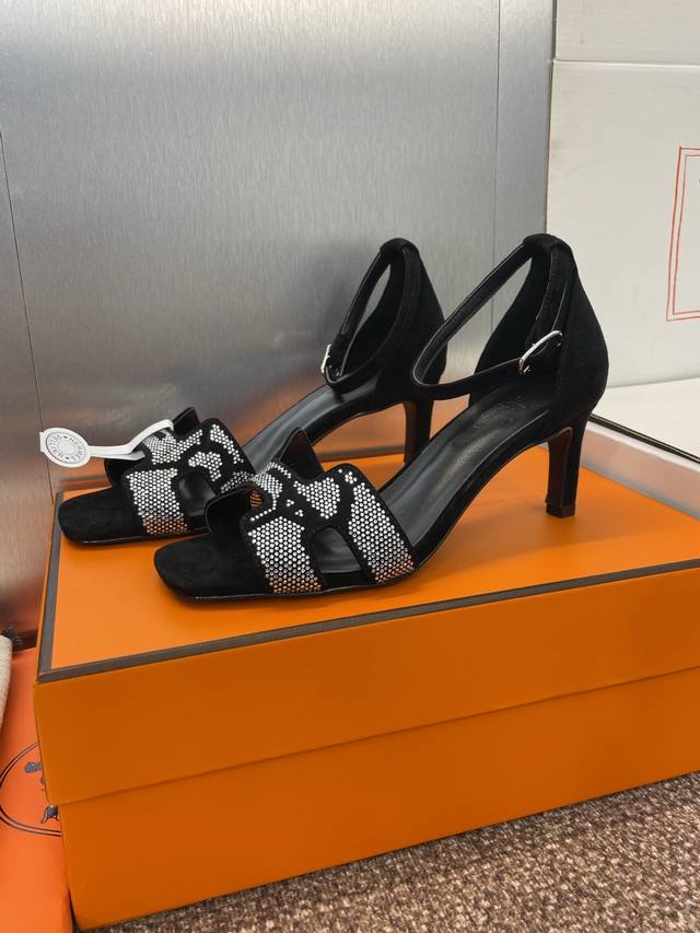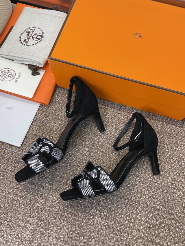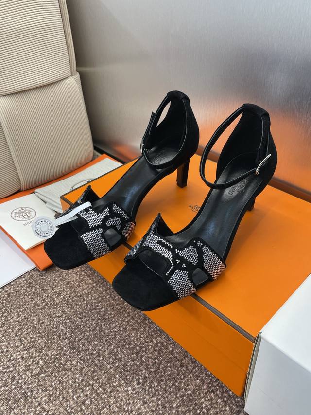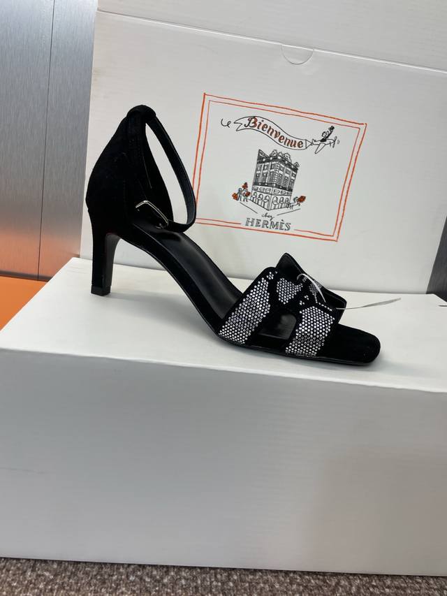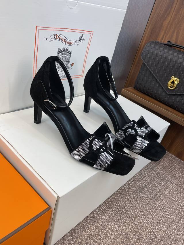 莞产 代购级 Hermes 爱马仕 经典款Joy 时尚水钻女凉鞋 搭配H鞋头 超级舒服 每个细节都做到极致 搭配同色调标志性纯鞋扣 设计简约流畅 打造时尚柔美造型 原版小牛皮原版1:1独家私模鞋跟 原版真皮大底