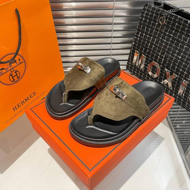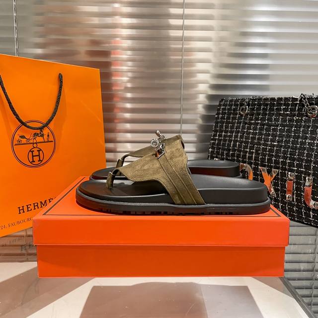 橙子出厂价 Hermes 爱马仕2024早春新款 银扣夹脚人字拖 凉拖鞋 码数:35-42