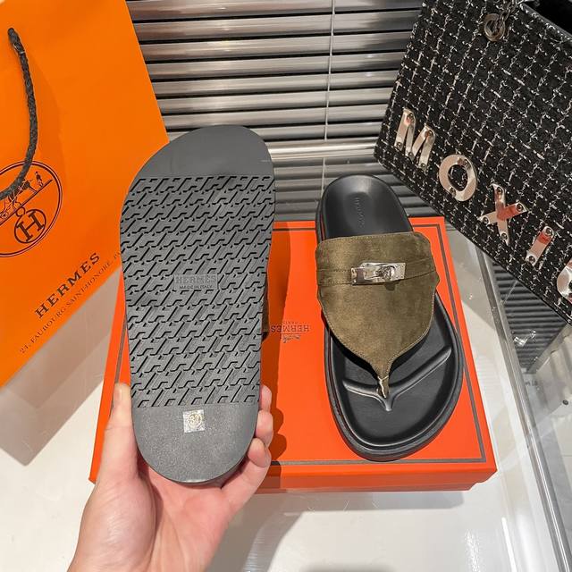 Hermes 爱马仕2024早春新款 银扣夹脚人字拖 凉拖鞋