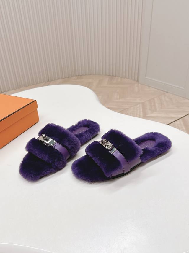 / 爱马仕2025Ss秋冬新款毛毛拖鞋毛毛鞋 这季节美鞋太多这款毛毛拖真的是让人无法自拔真太酷太百搭了~ 上脚超级无敌好看舒服面料:进口羊卷毛 柔软舒适 原版五金扣