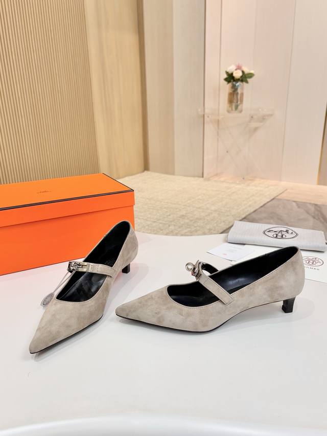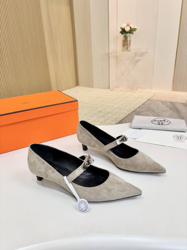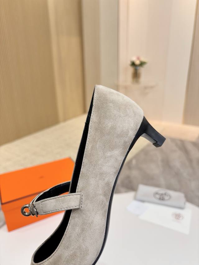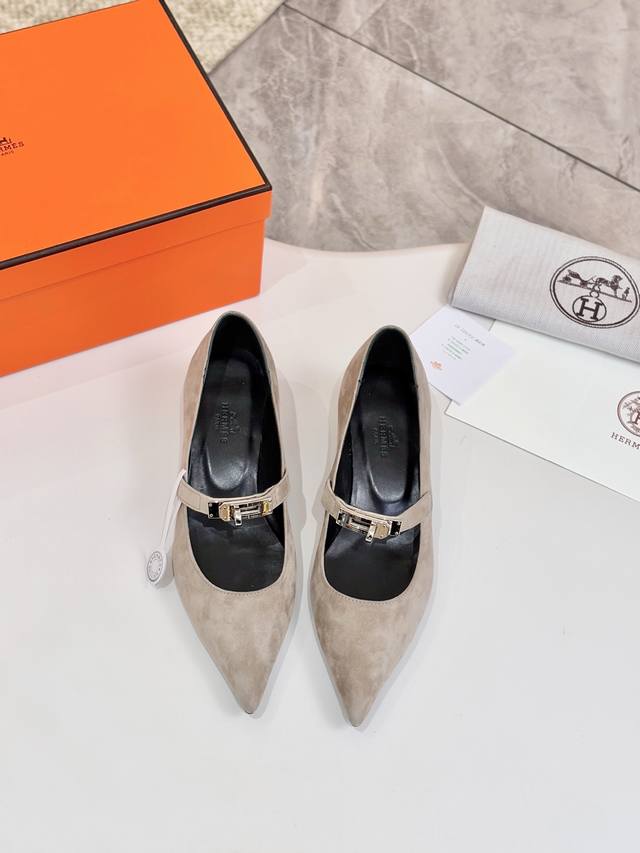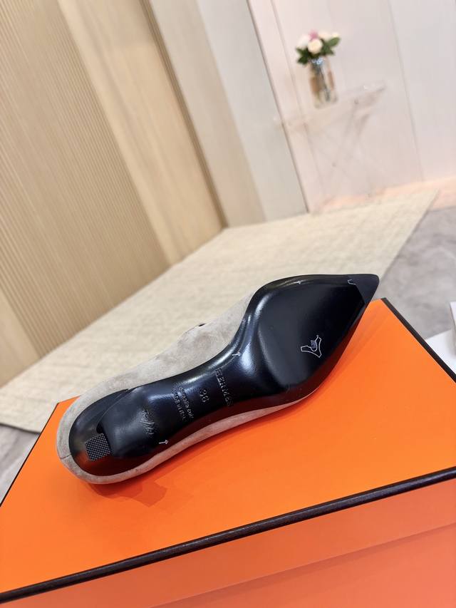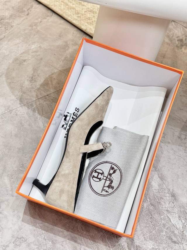 / 爱马仕Hermes,真皮大底 顶级版本!原版开发 鞋面:卡其白灰羊猄皮 内里垫脚 混种羊皮 跟高 :4Cm 大底:意大利真皮大底 码数:34-43注 34 41