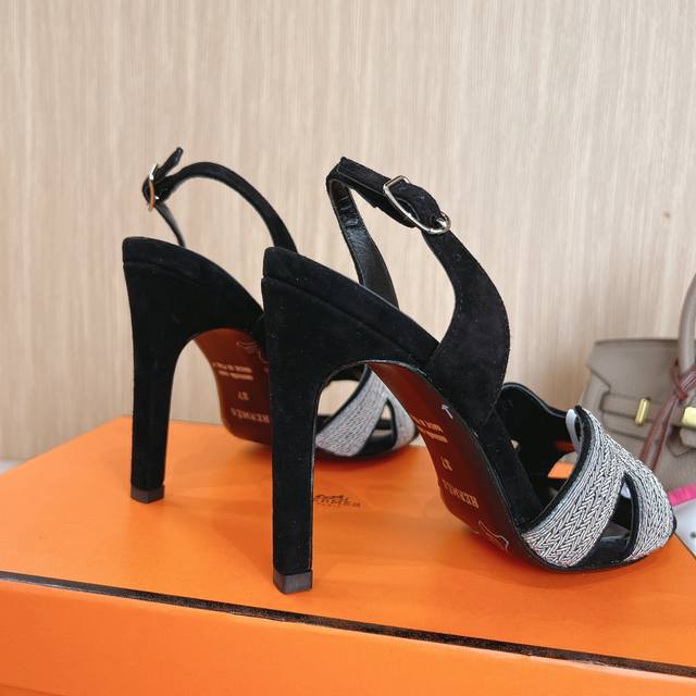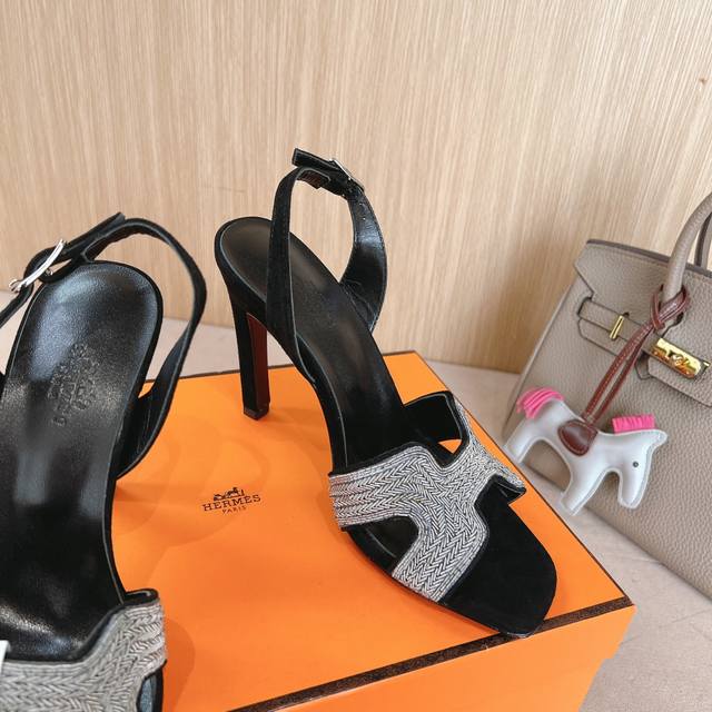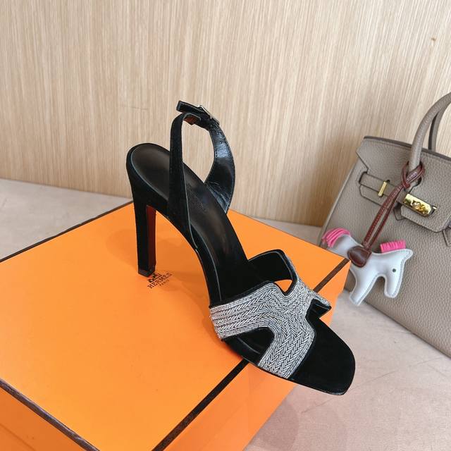 独家狠货出厂价700Hermes Ella 105凉鞋系列 ———————————时尚又百搭 超级舒服 每个细节都做到极致 原版定制麂皮/内里混种羊皮/原版开模细跟鞋跟/独家开发H鞋面饰品