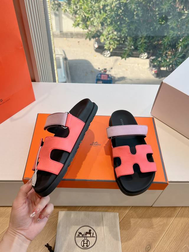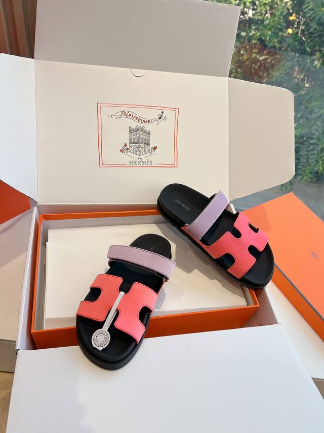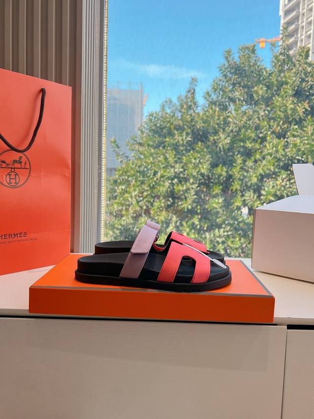 G033代购级别所见即所得g033Hermes爱马仕 2025 最新款大h扣人字扣二舅拖鞋真皮注塑鞋底