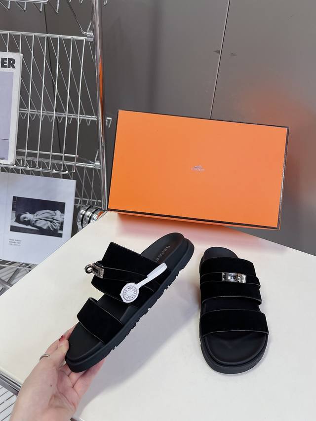 男10 Ηermes 爱马仕春夏经典情侣款二舅拖鞋 Chypre 丑萌丑萌二舅拖鞋 老头拖鞋,上脚简直太舒服了!憨厚又可爱!