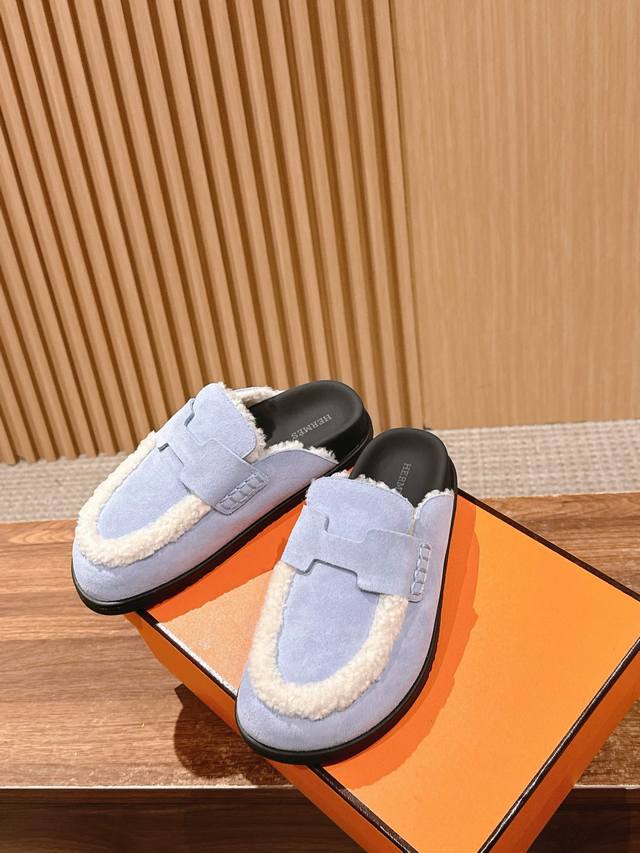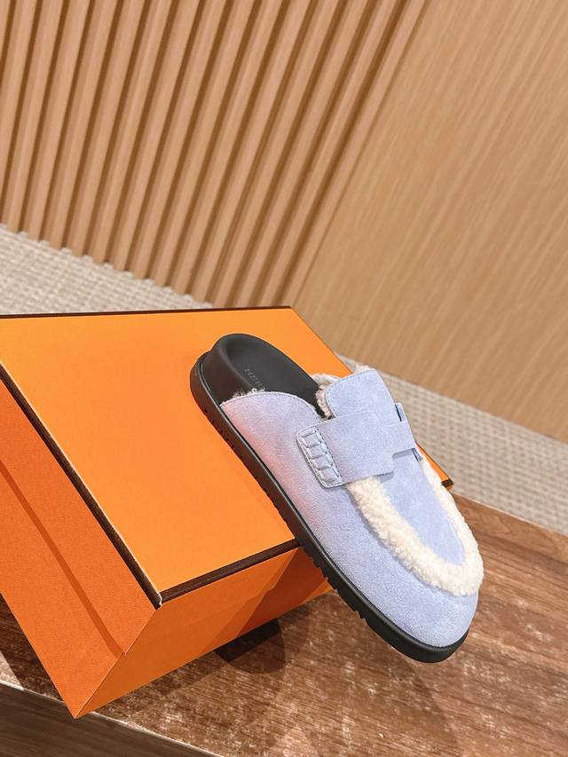 男+10 爱马仕勃肯毛绒半拖 秋冬穿搭必入勃肯半拖