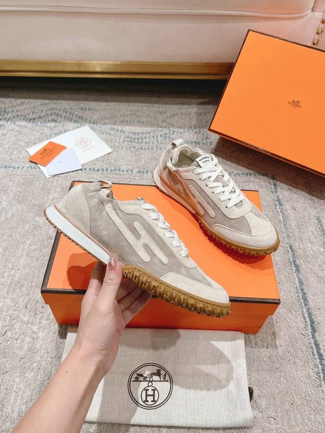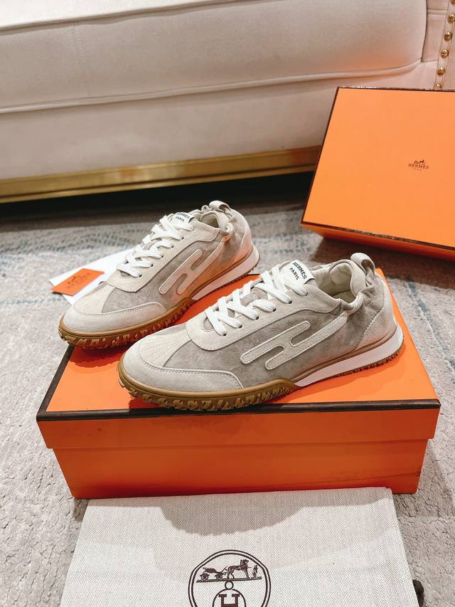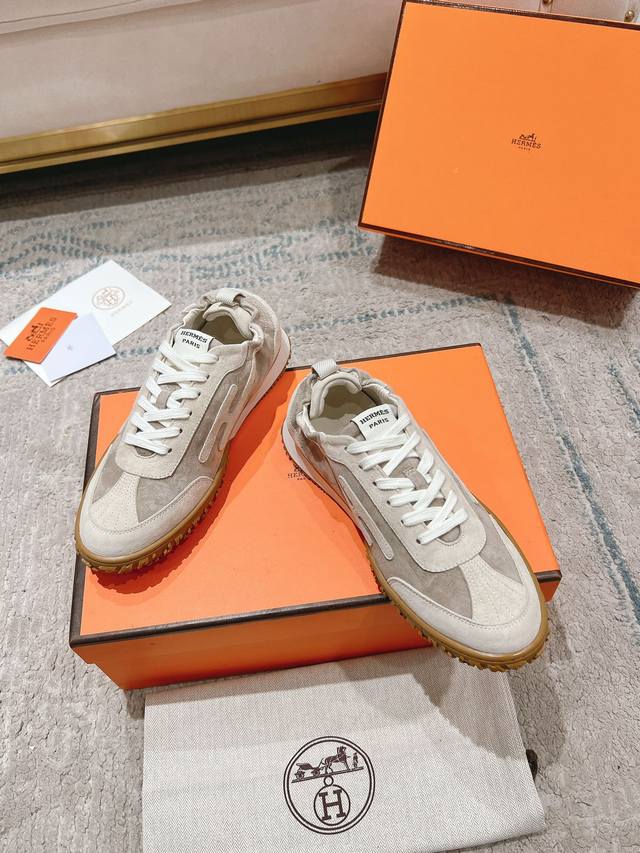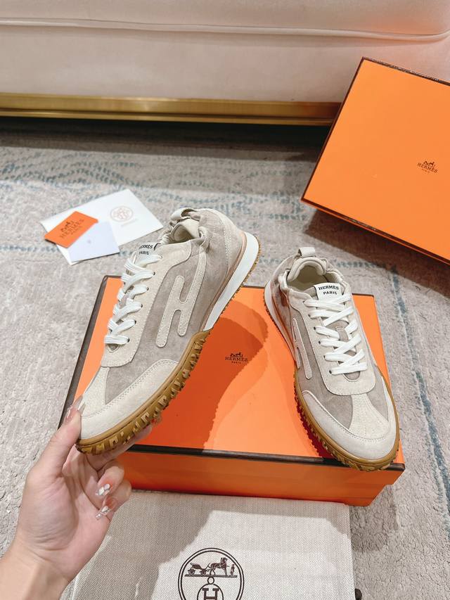 Hermes#爱马仕新款in #情侣款阿甘德训鞋 小白鞋