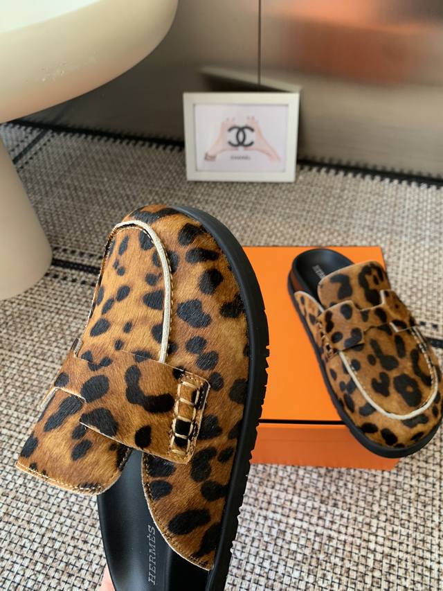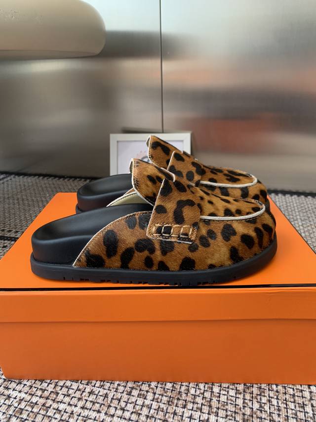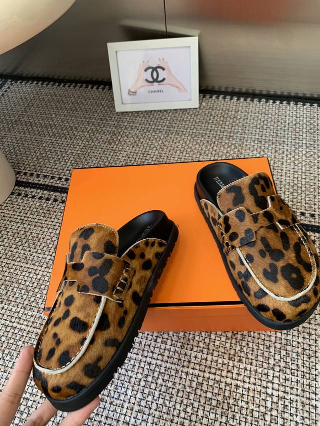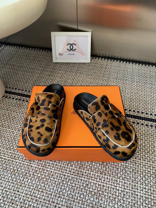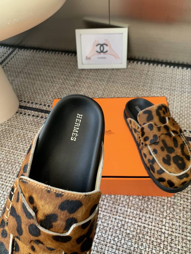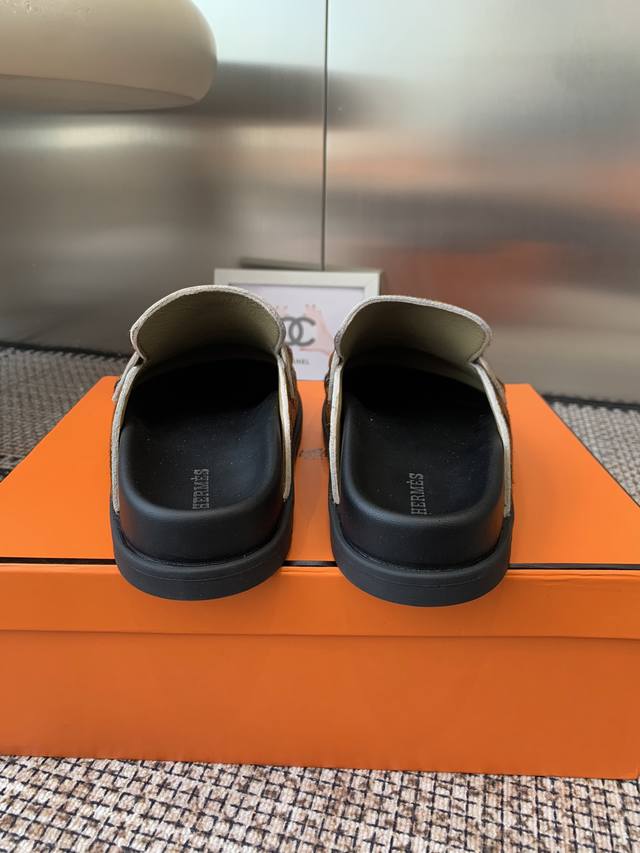 男50 Hermes爱马仕情侣款H家呆萌穆勒半拖勃肯鞋,
