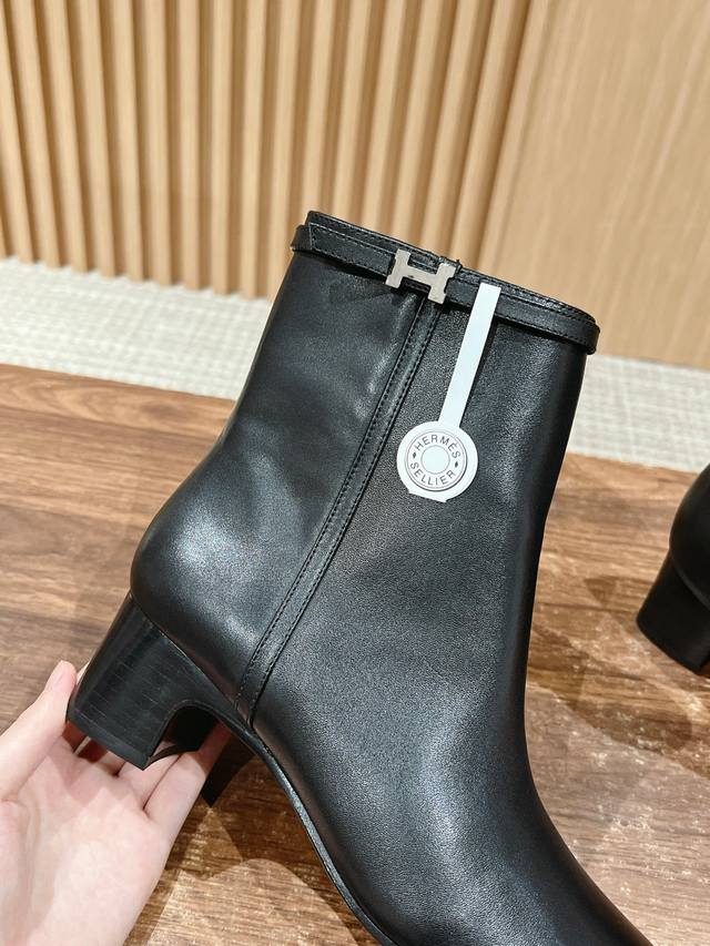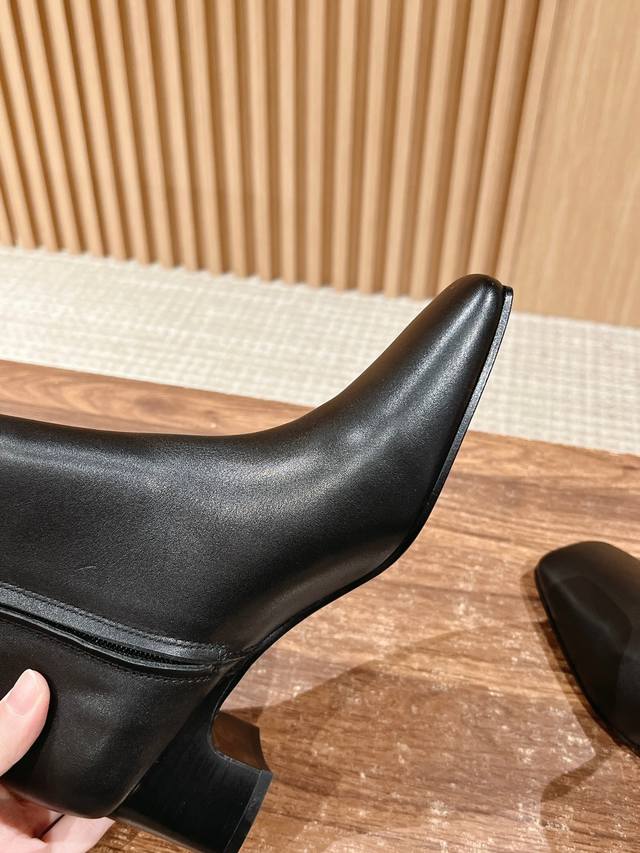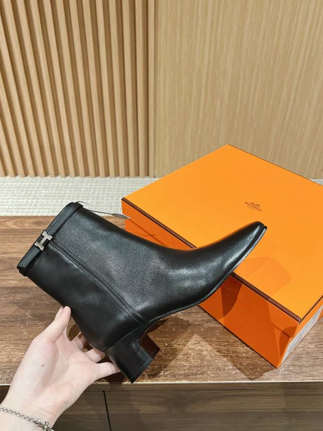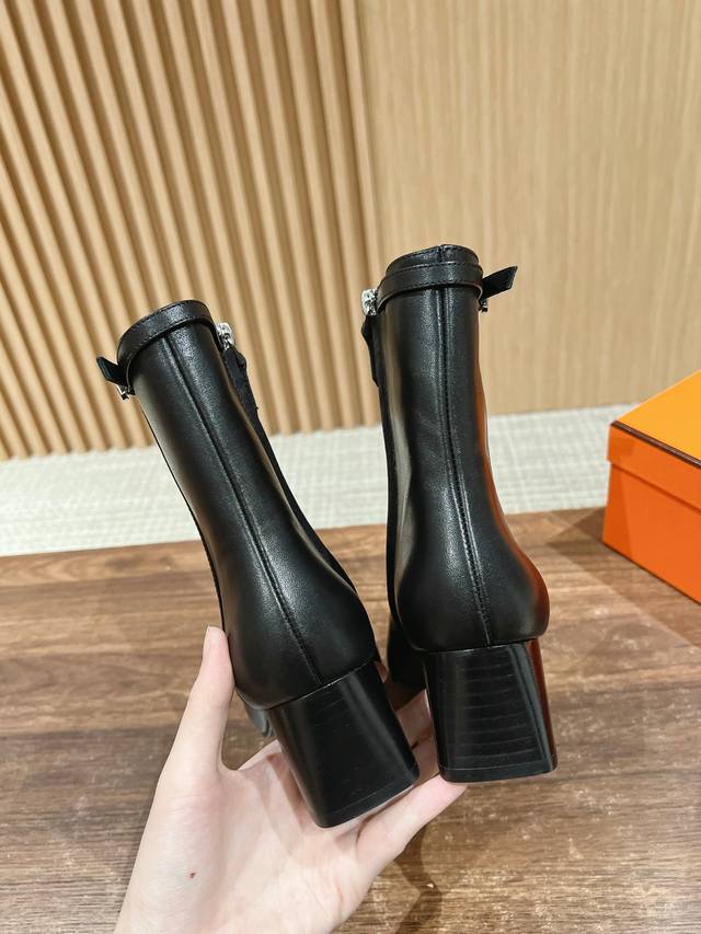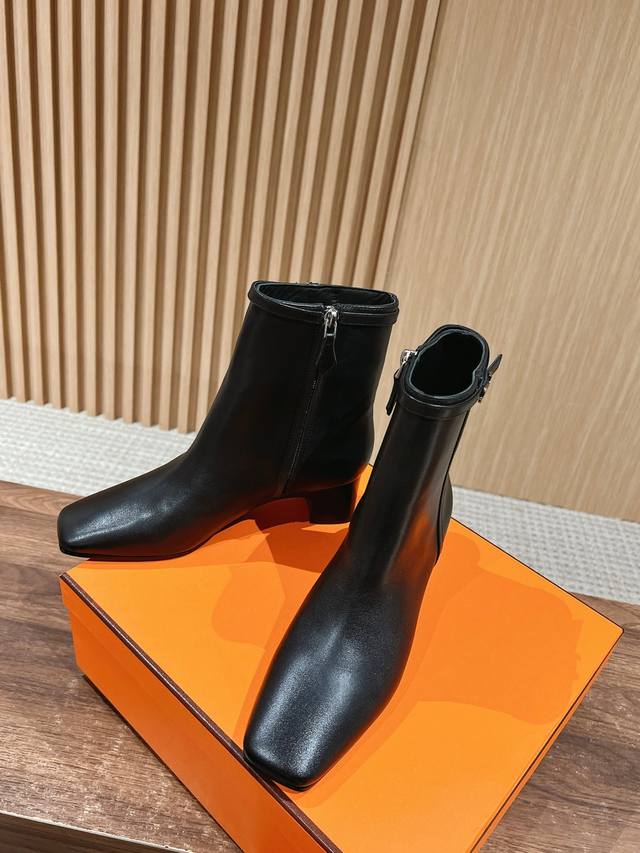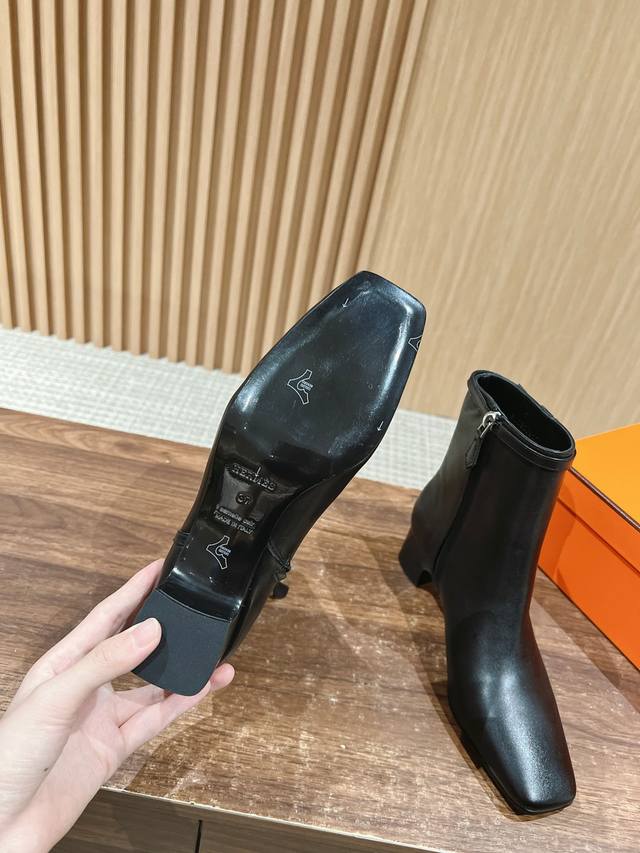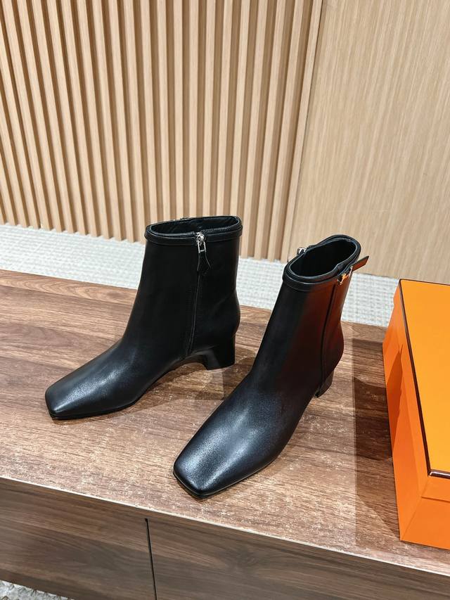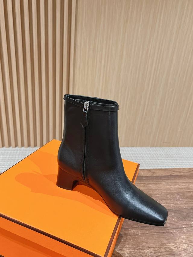 莞产 # 爱马仕家新款爱粗跟方头内侧拉链靴