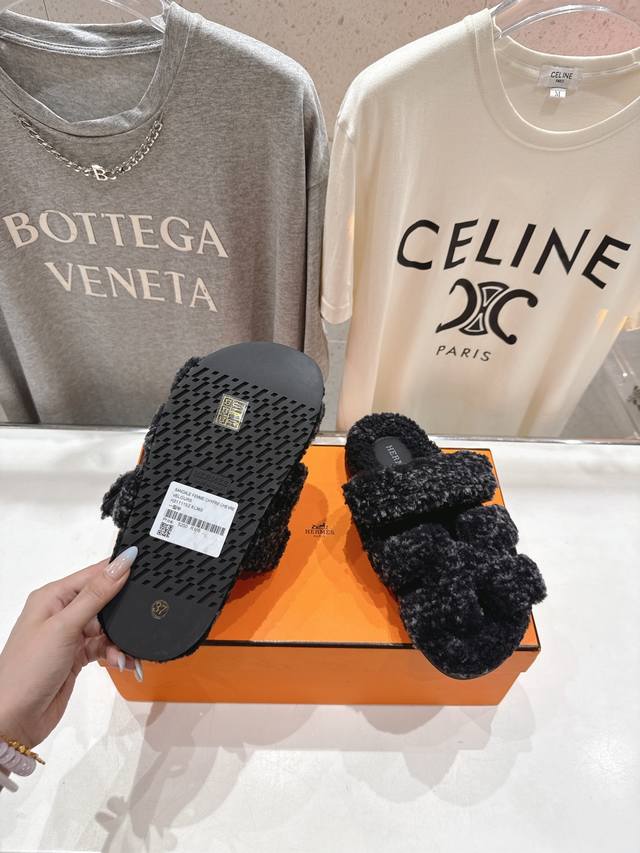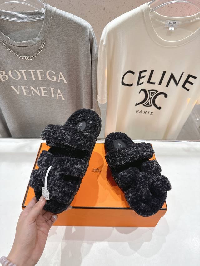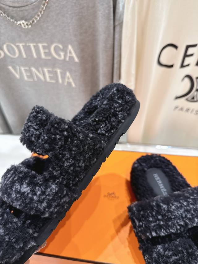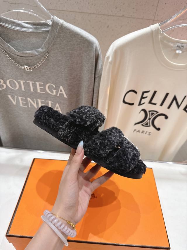 Hermes 爱马仕H家又一款让你完全Hold不住钱包的大爆款,情侣款二舅毛毛拖