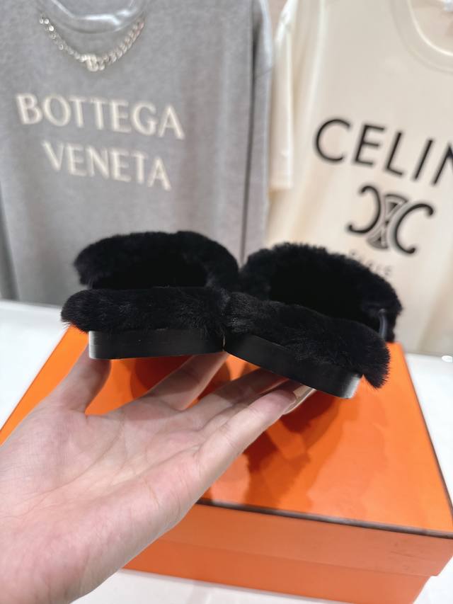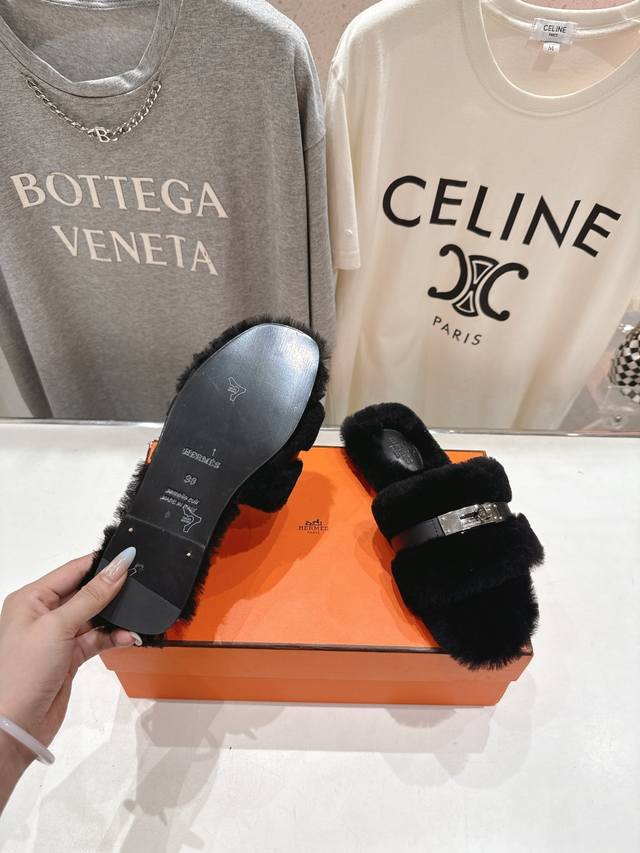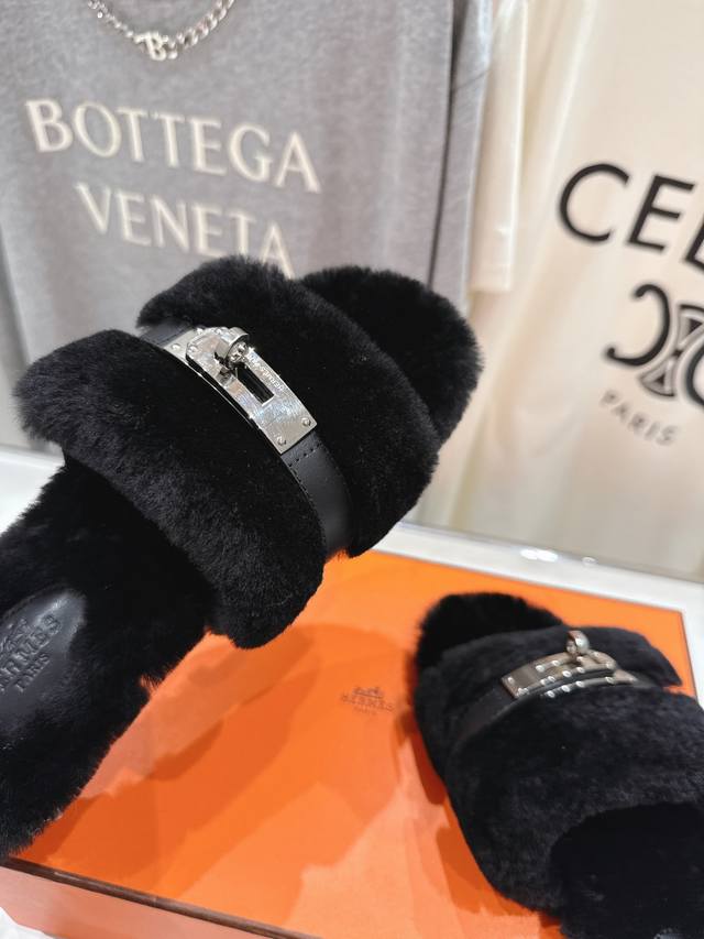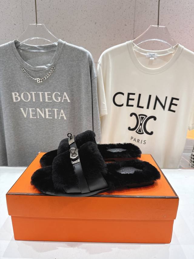 Hermes* 爱马仕F021 2025Ssh家新款平底毛毛拖鞋