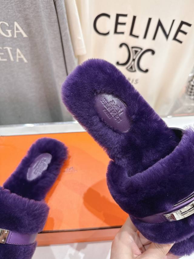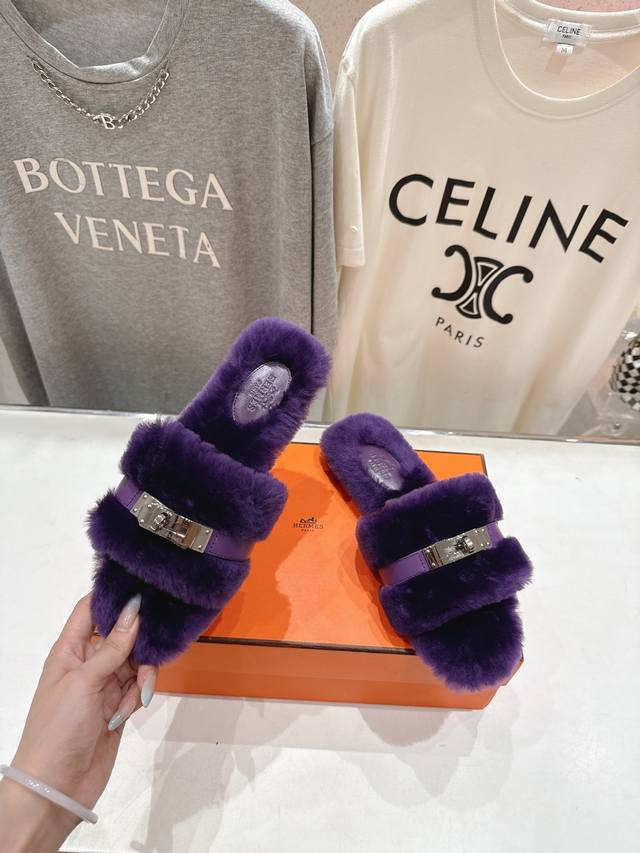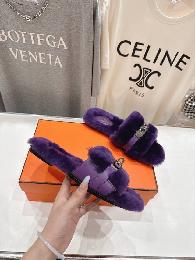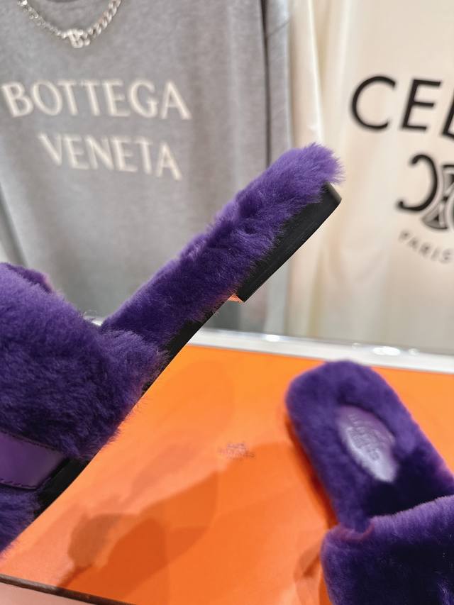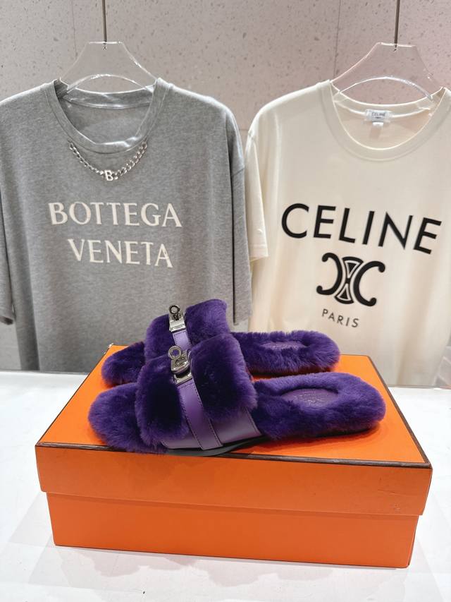 Hermes* 爱马仕F021 2025Ssh家新款平底毛毛拖鞋