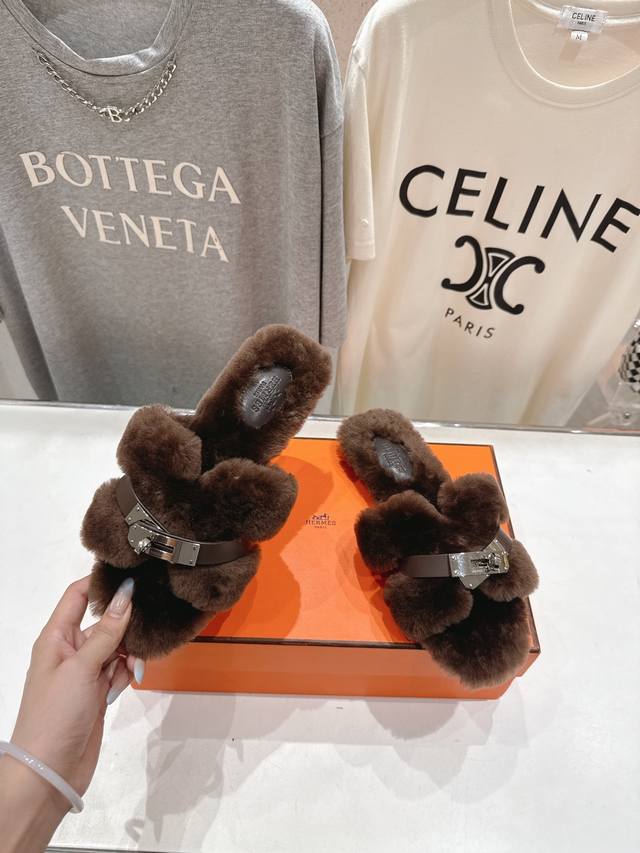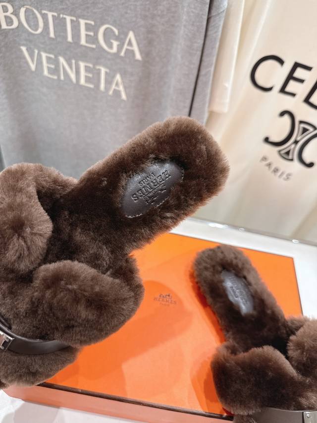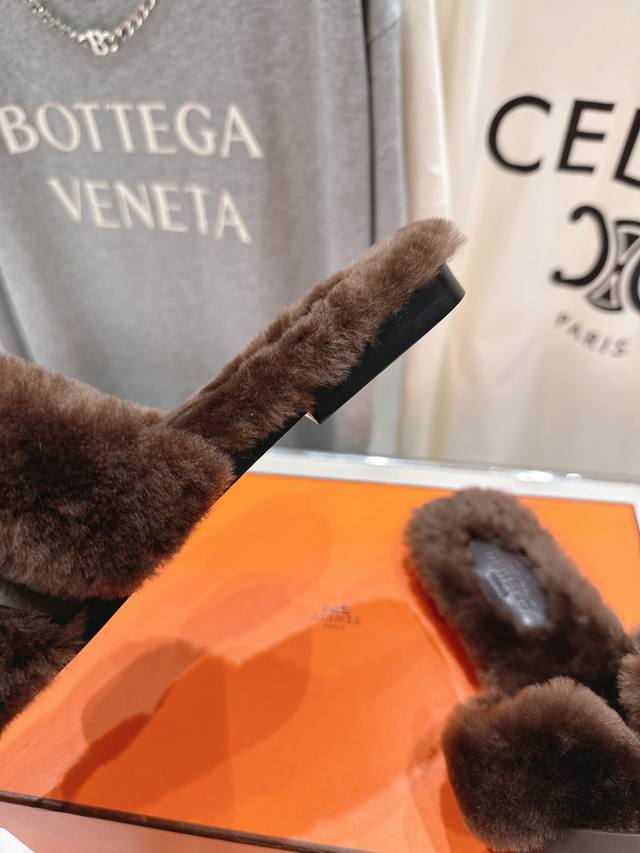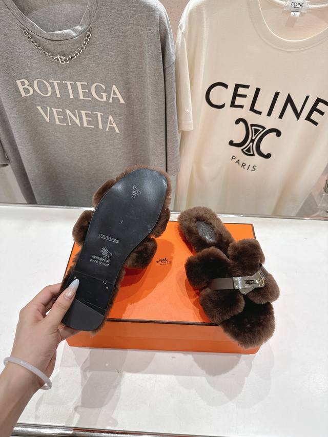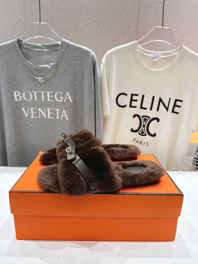 Hermes* 爱马仕F021 2025Ssh家新款平底毛毛拖鞋