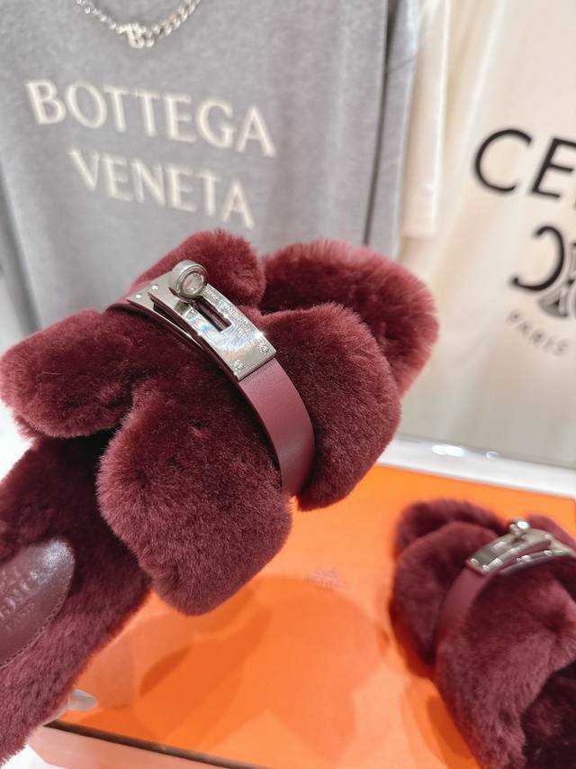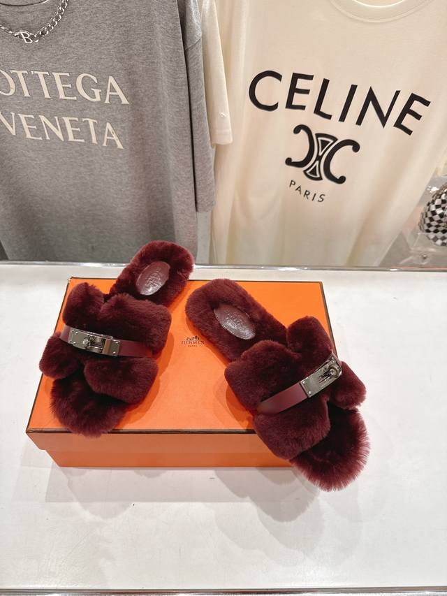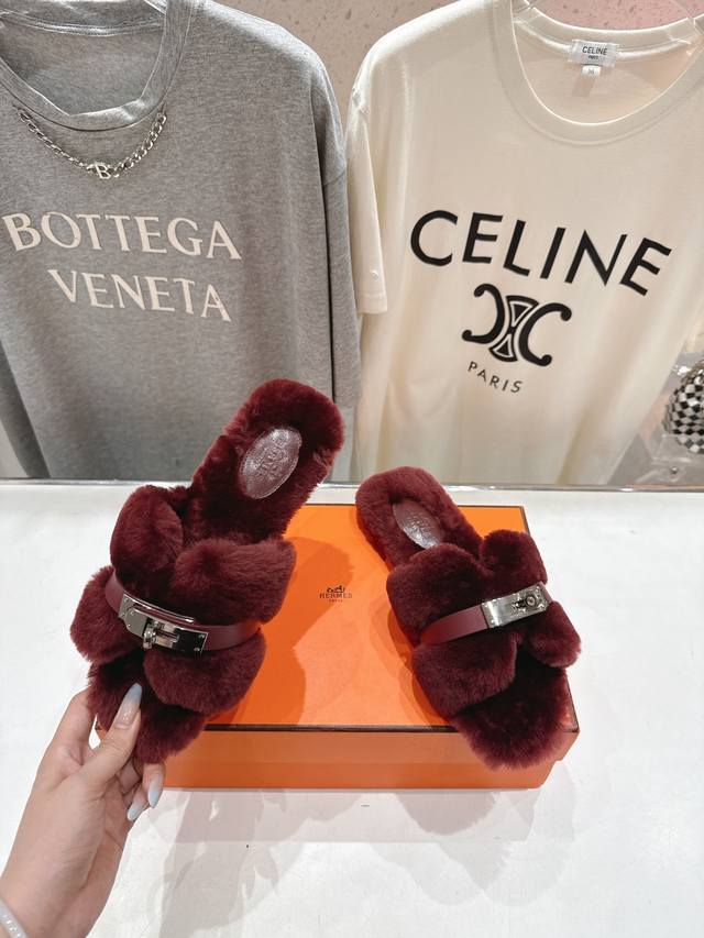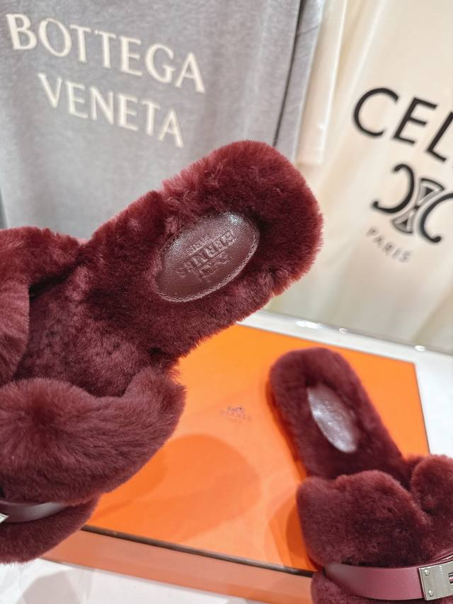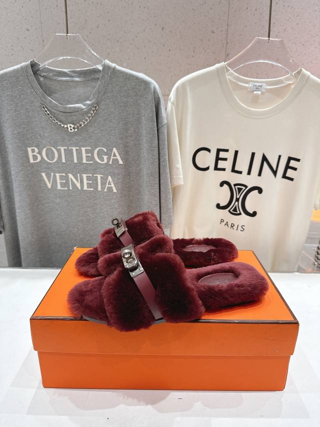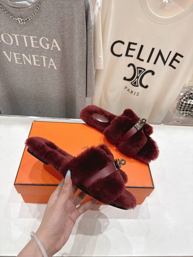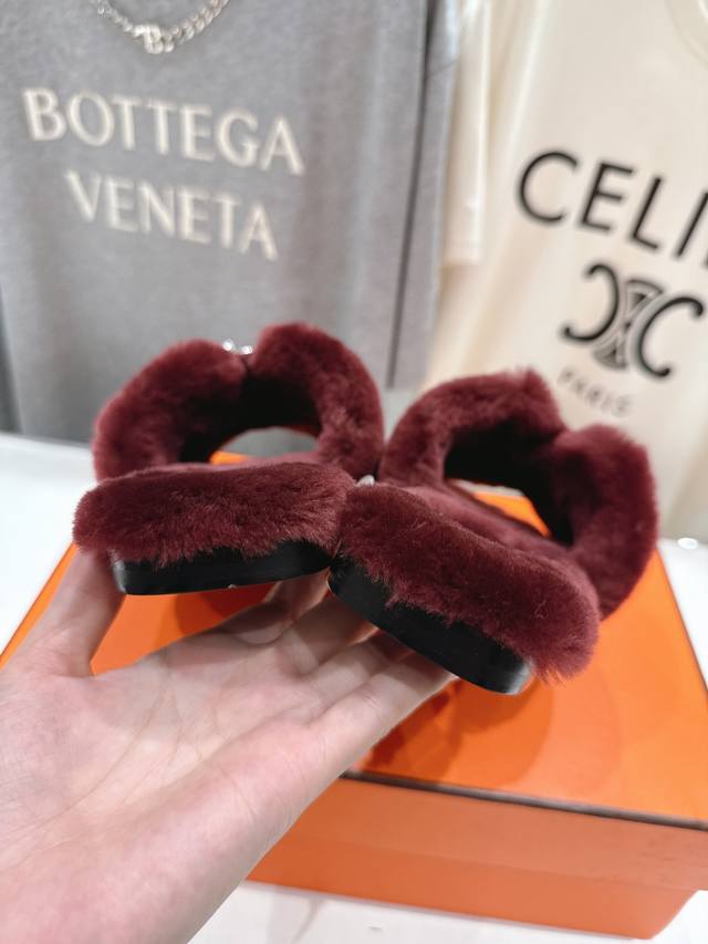 Hermes* 爱马仕F021 2025Ssh家新款平底毛毛拖鞋