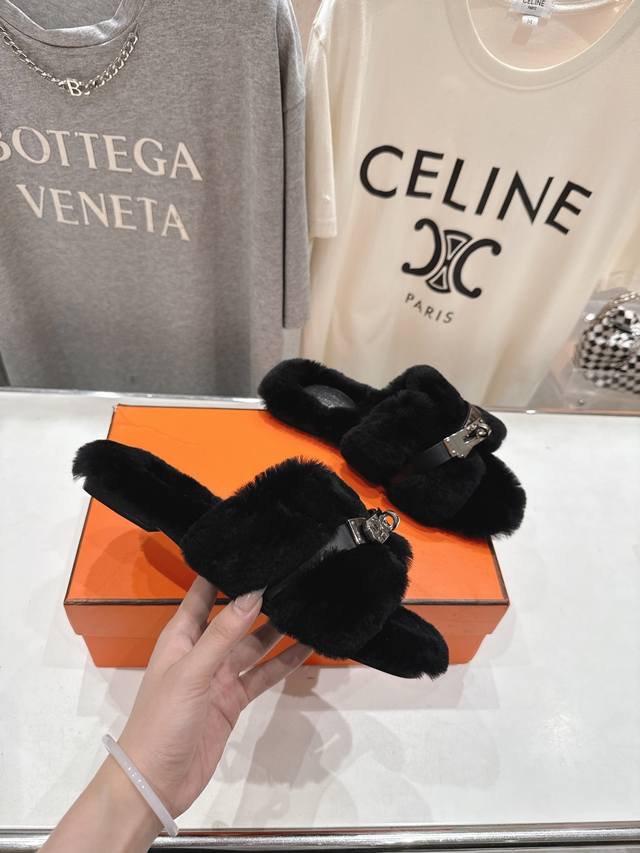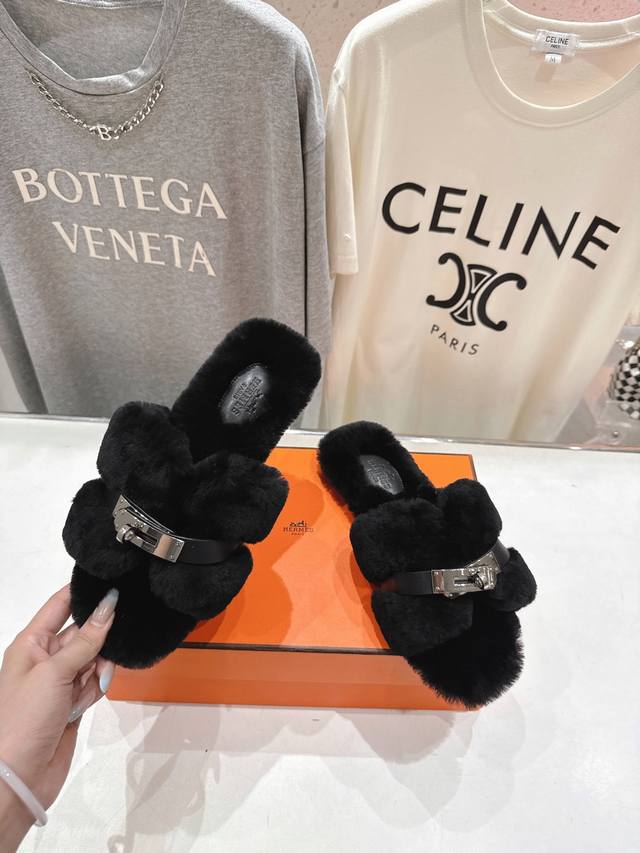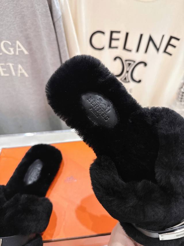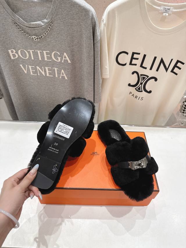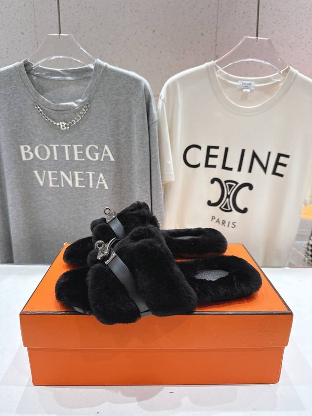 Hermes* 爱马仕F021 2025Ssh家新款平底毛毛拖鞋