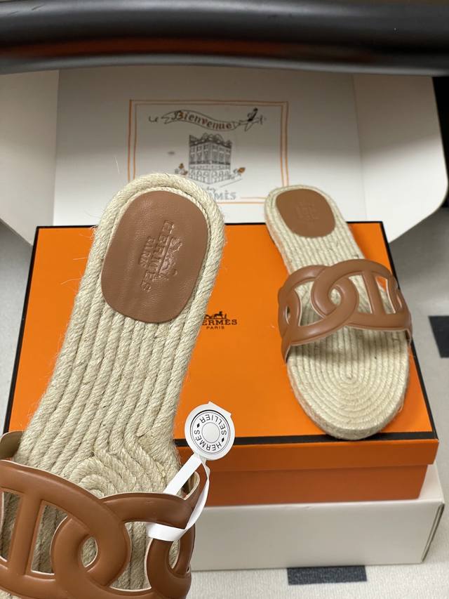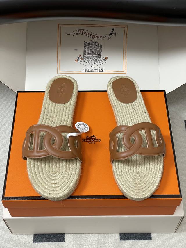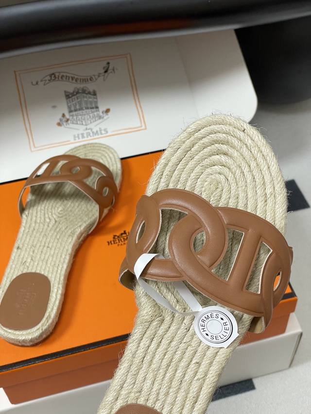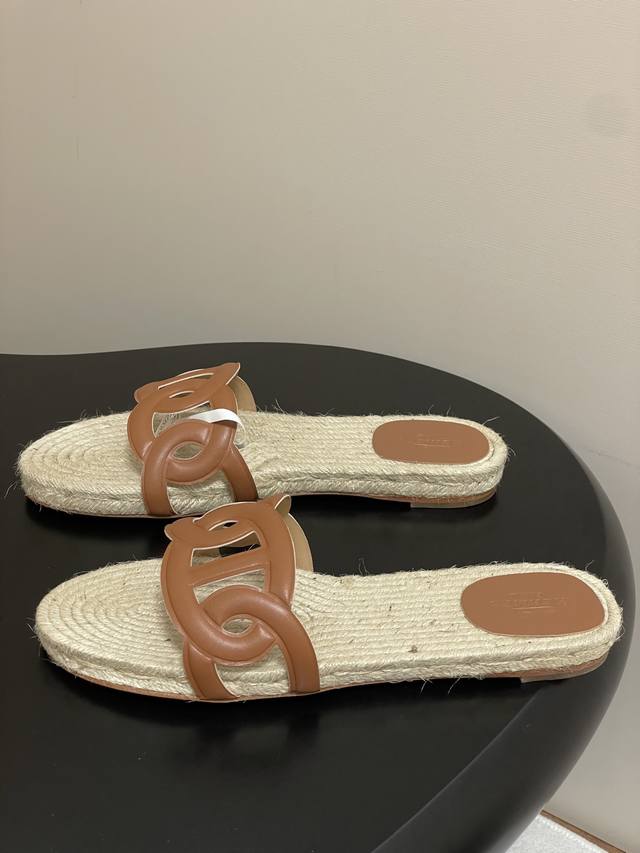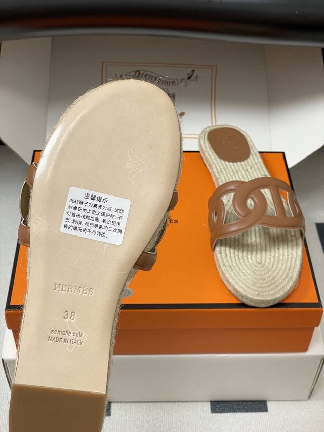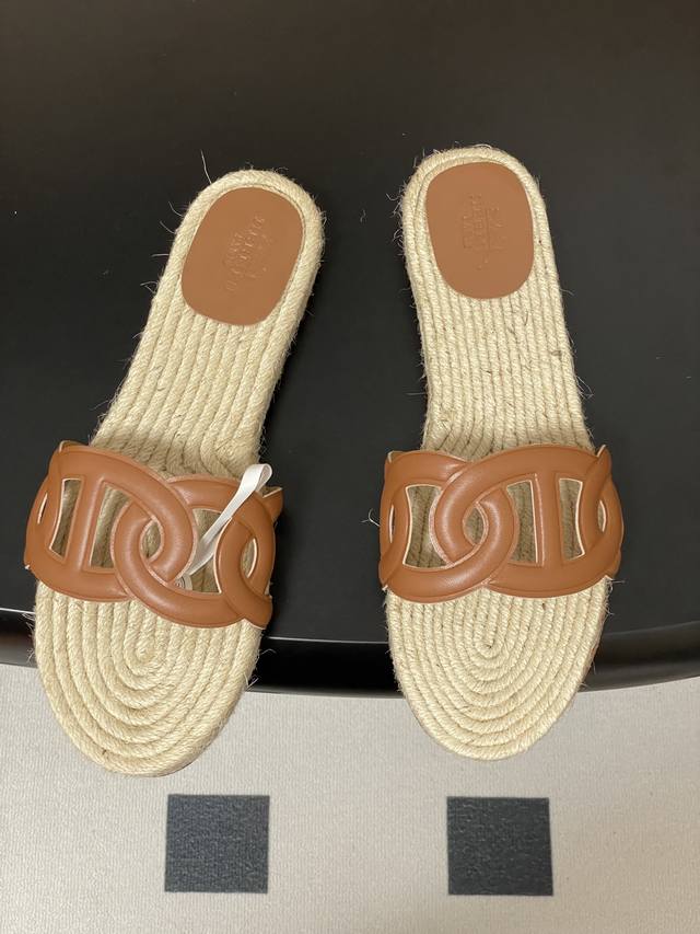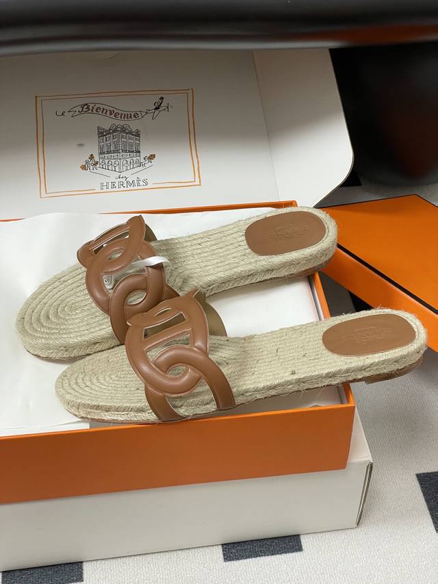 Hermes 爱马仕 H家 Famosa猪鼻环草编鞋渔夫凉拖鞋