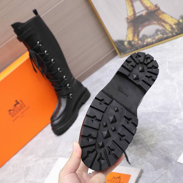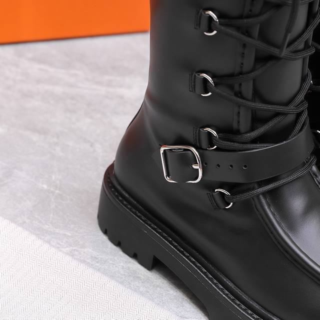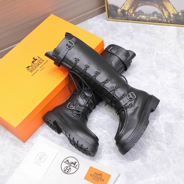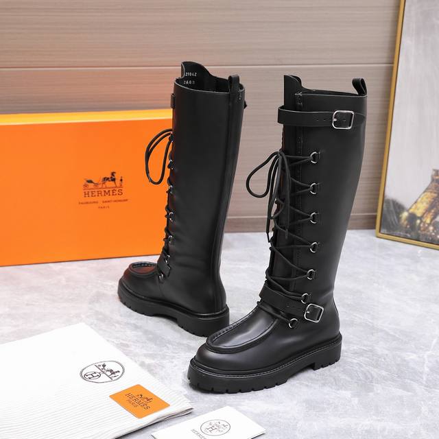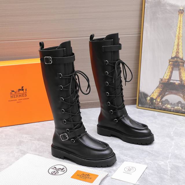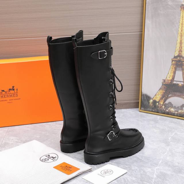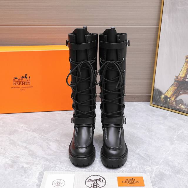 Hermes 爱马仕秋冬新款 H家 Landscape长靴系列机车风皮带扣骑士靴系带厚底直筒长靴