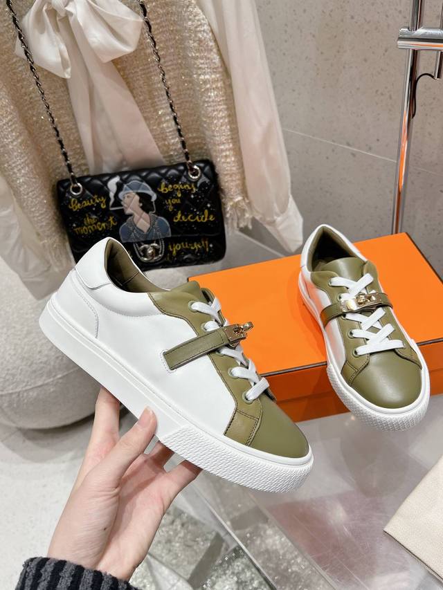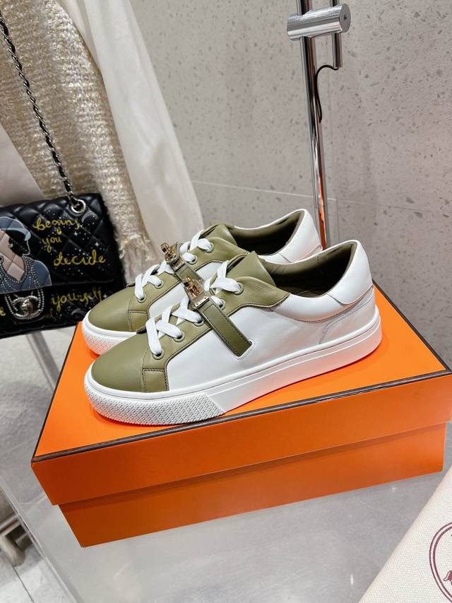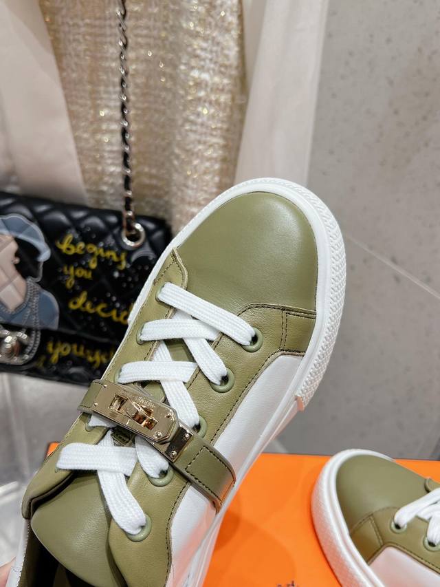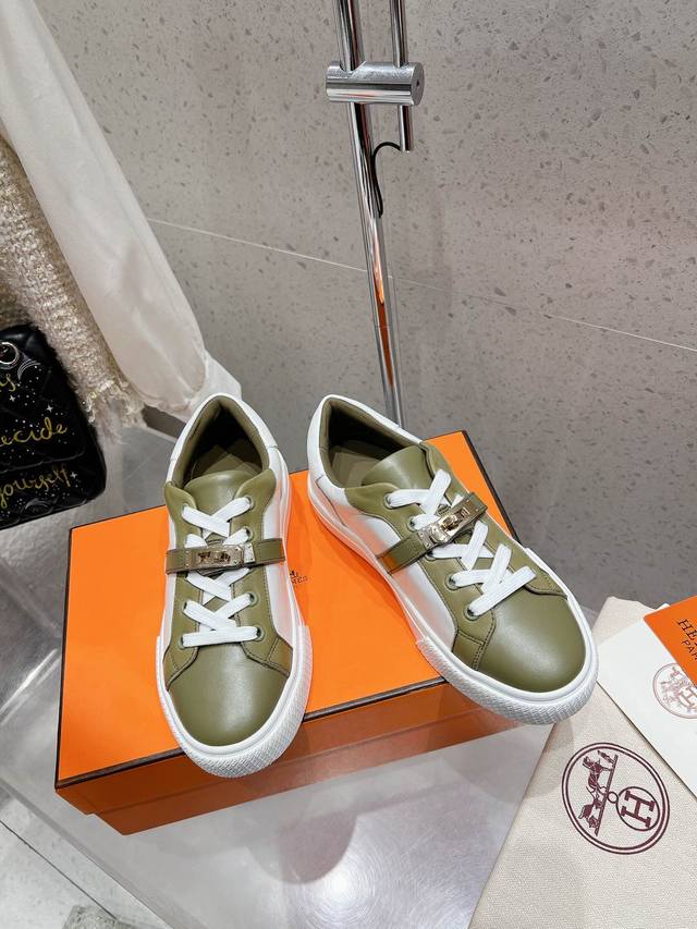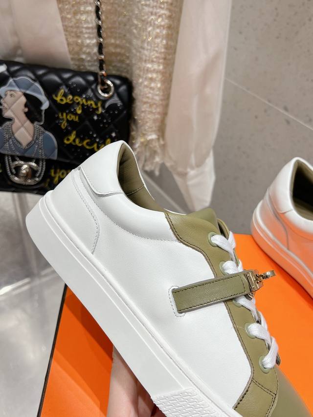 顶级版本布面 皮面 男10Hermes 爱马仕休闲鞋情侣款H家 四季新品运动鞋Dy Kelly金属扣休闲运动鞋小白鞋这双 Kelly 小白鞋真的颜值爆表!H家