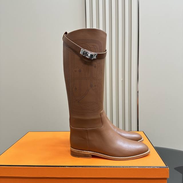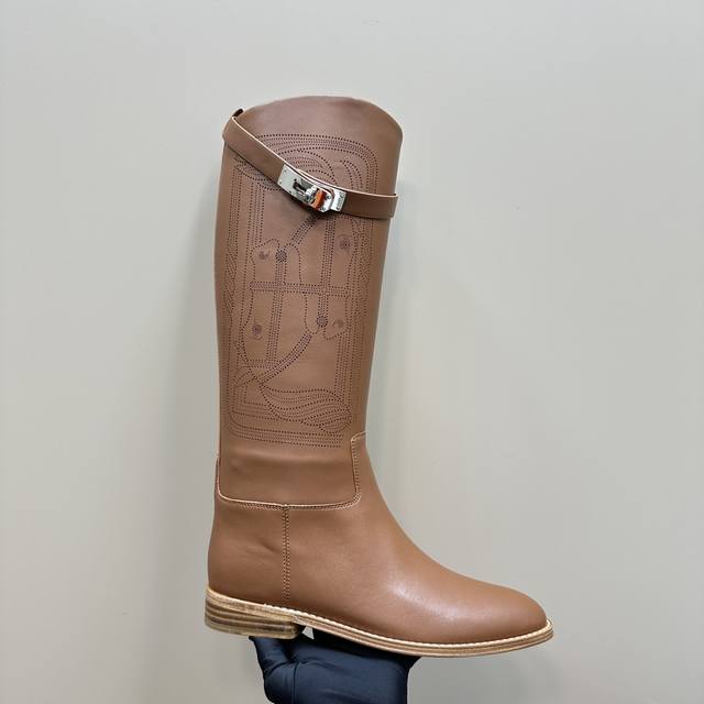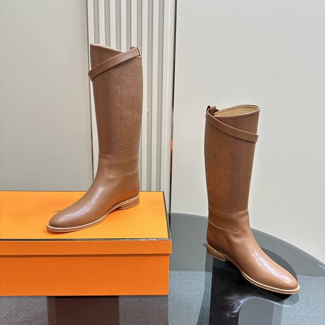 H家爱马仕hermes24新款3D刺绣打印 长筒靴骑士靴时装靴