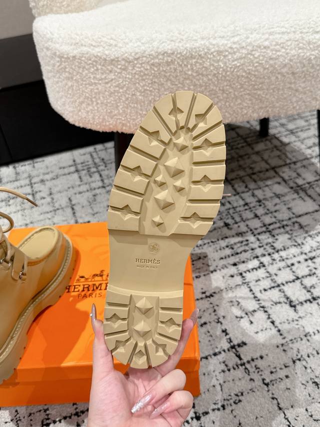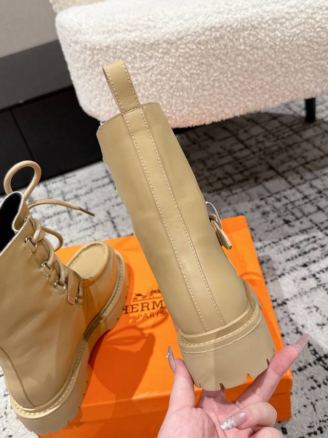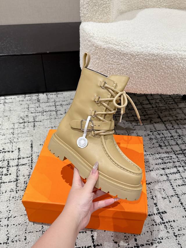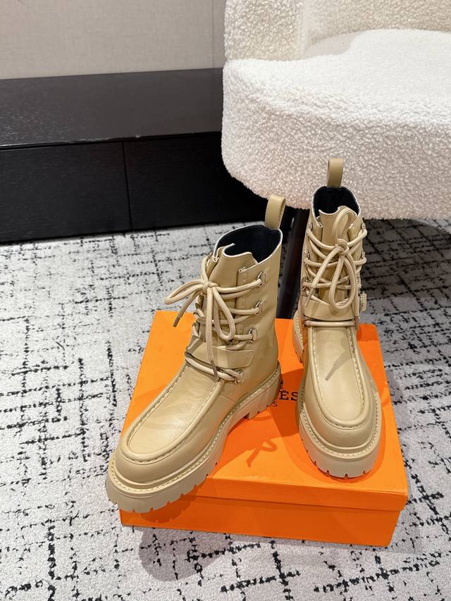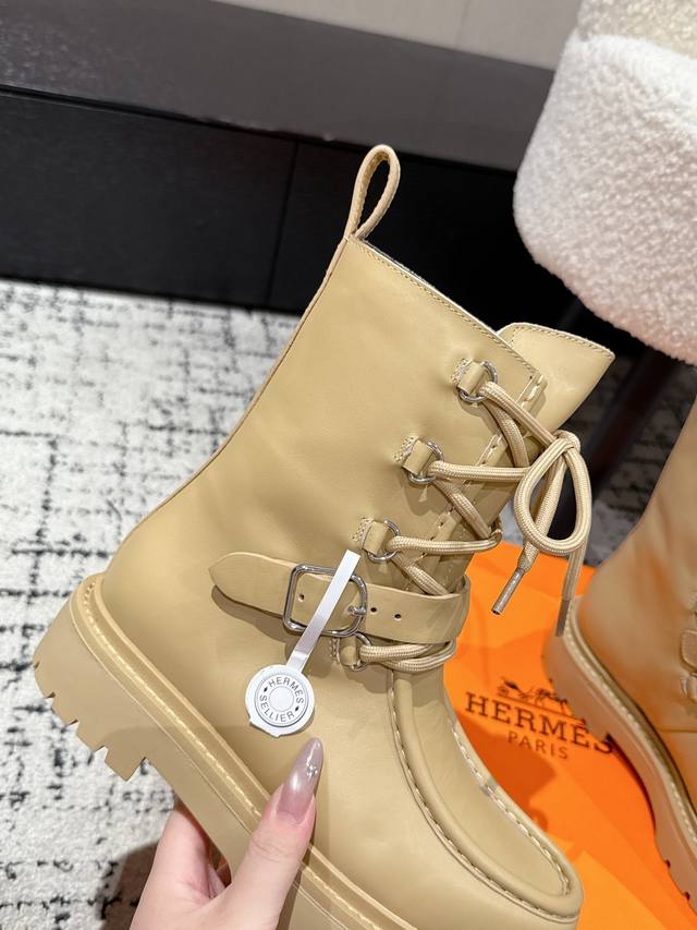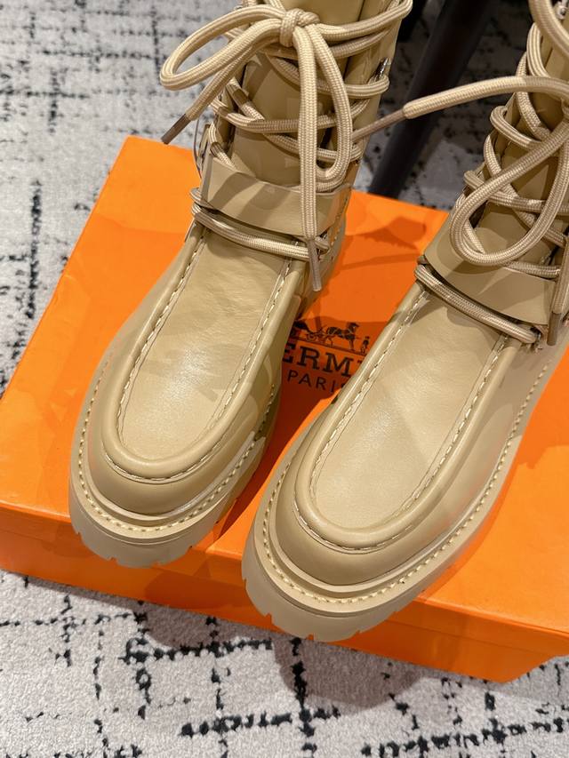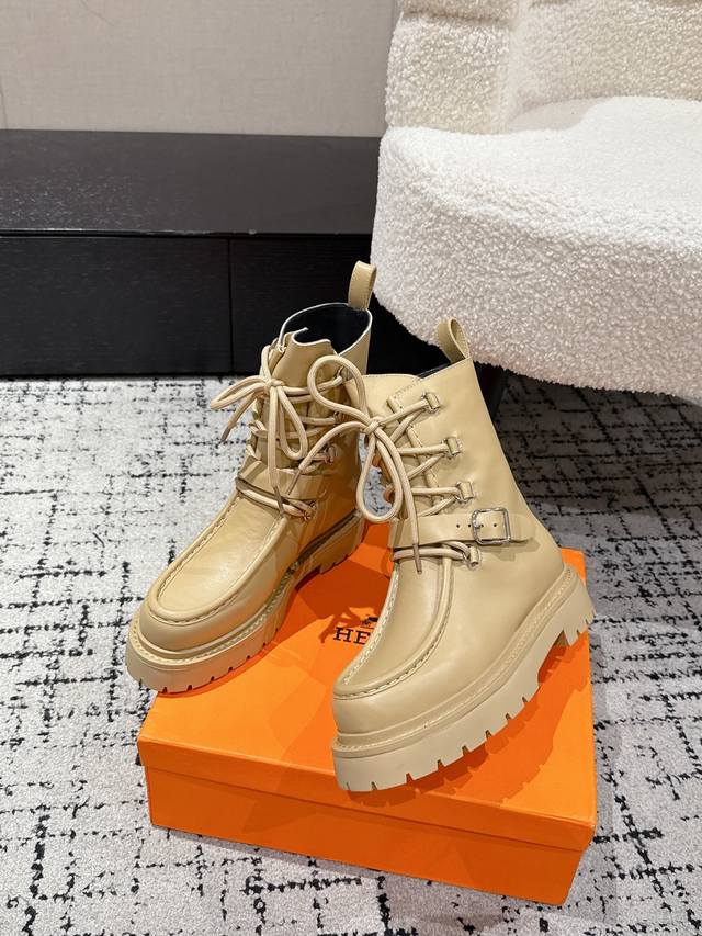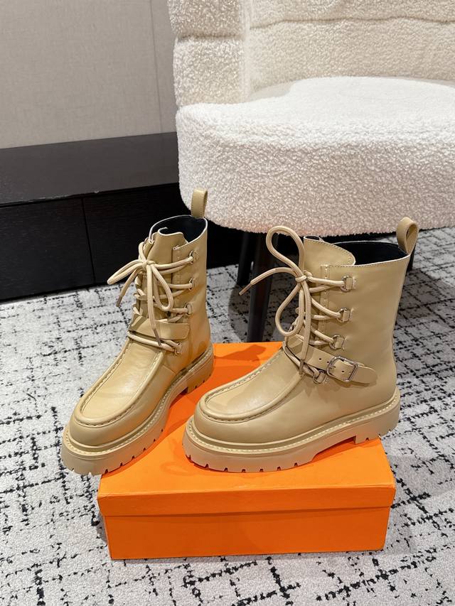 Hermes 爱马仕 25 Fw 秋冬新款Land及踝靴系列机车风皮带扣短靴系带厚底靴