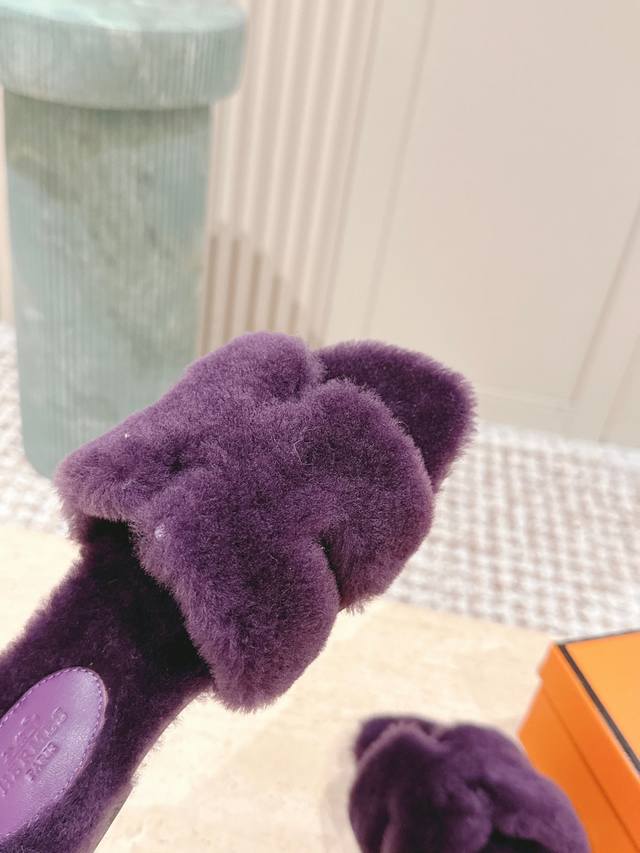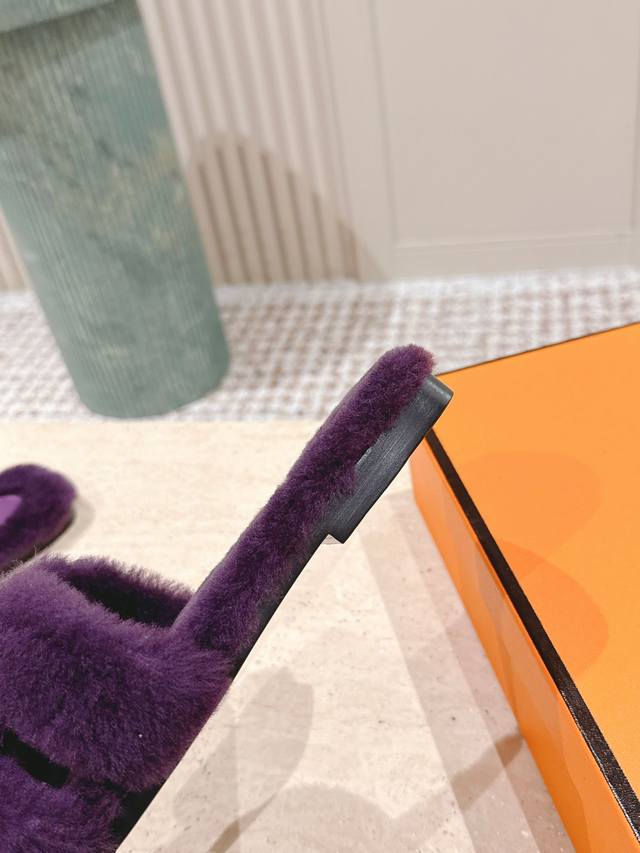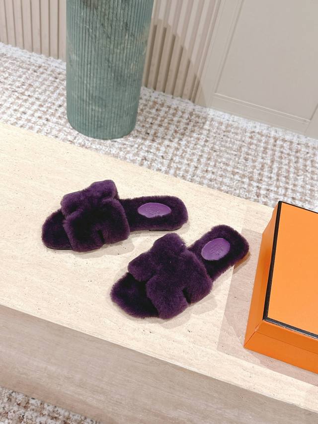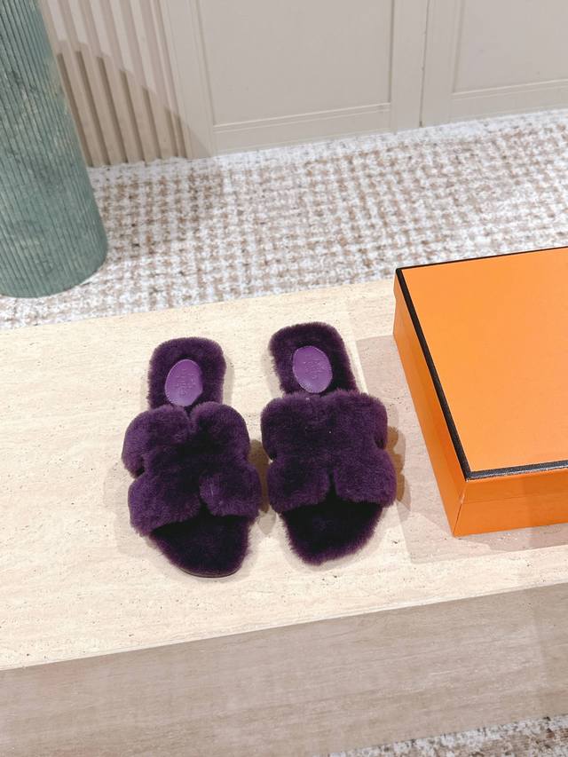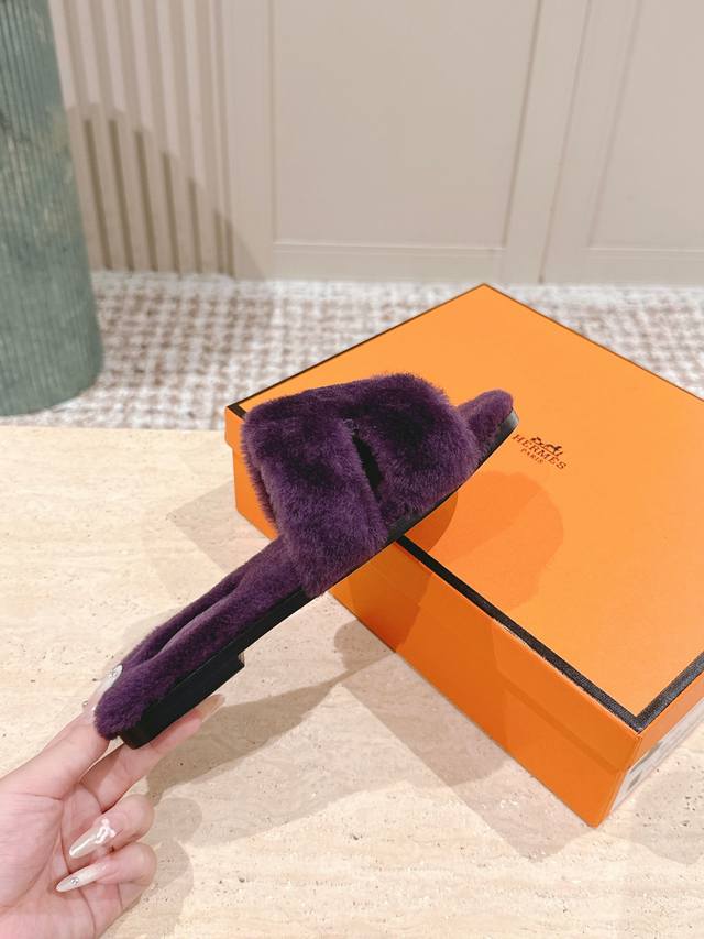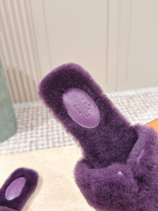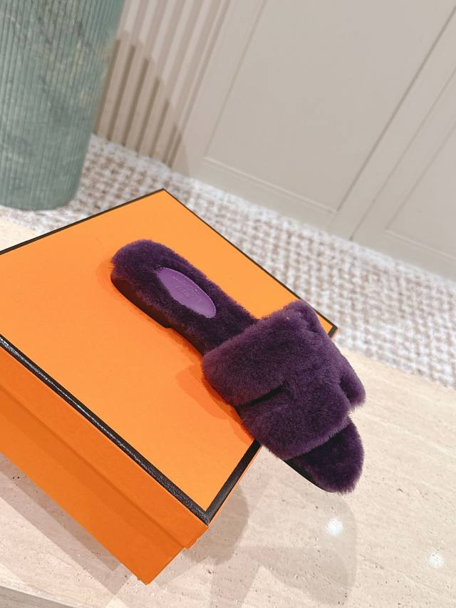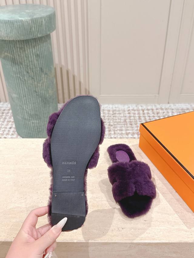 顶级版本: :Hermes Oran毛毛拖 经典羊皮毛一体毛毛拖鞋,温婉的气质,柔软的触感,好看又保暖 皮毛一体材质,鞋底意大利进口牛皮! Size 35-42
