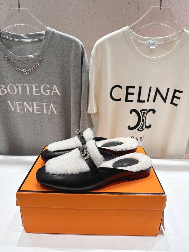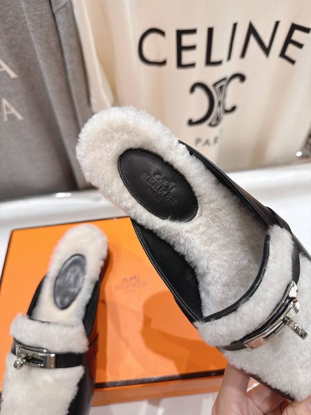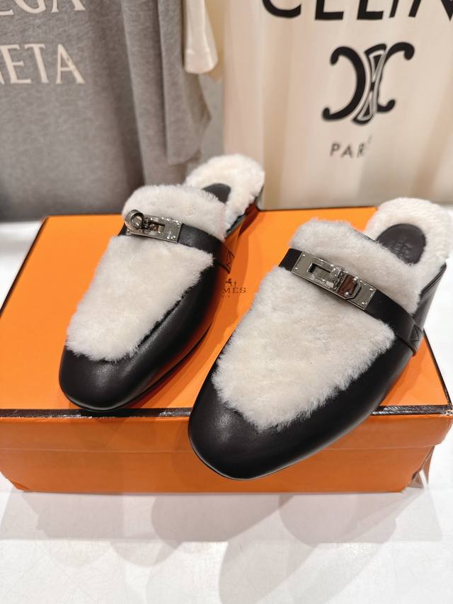 Hermes* 爱马仕H家2025Ss秋冬新款Kelly勃肯半包乐福鞋毛毛拖鞋半拖~