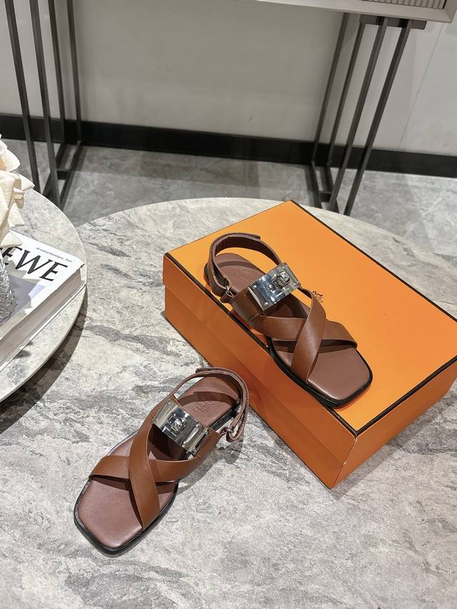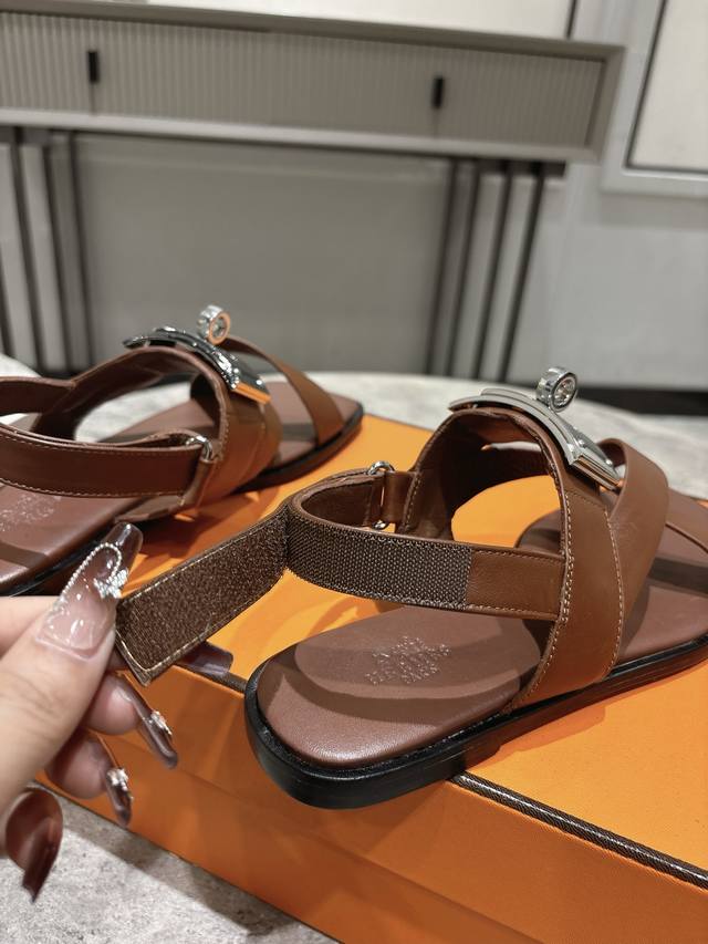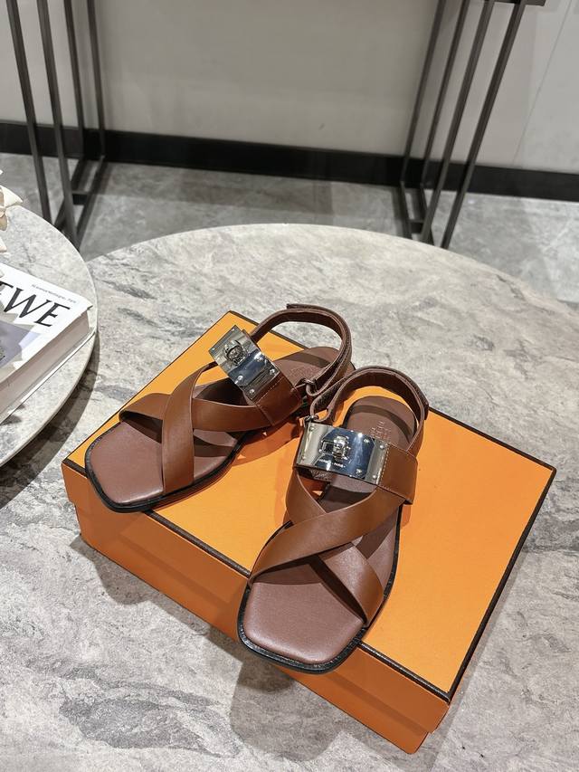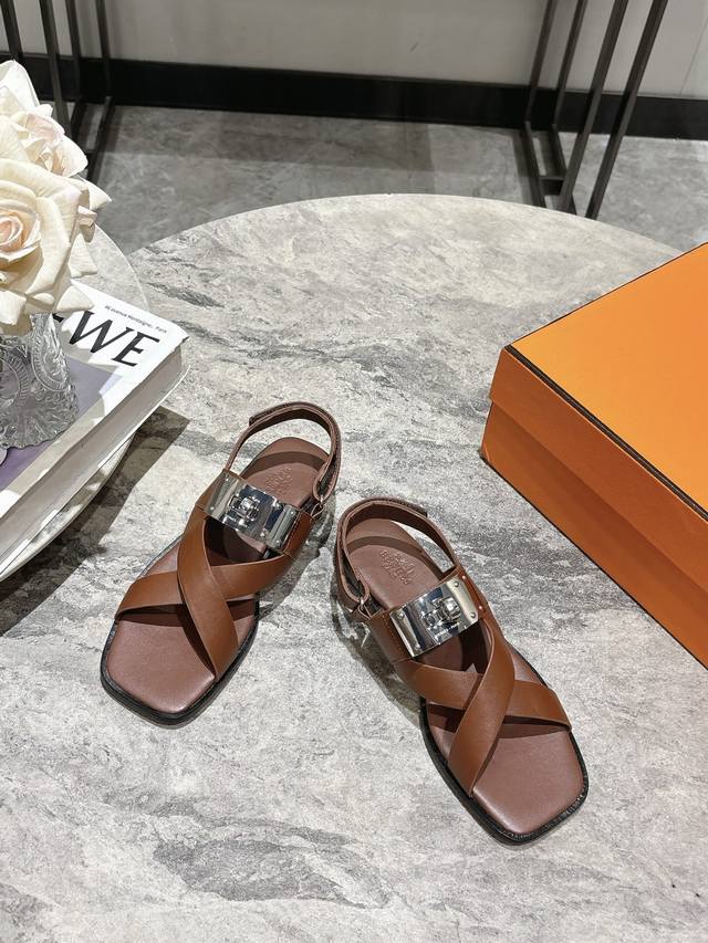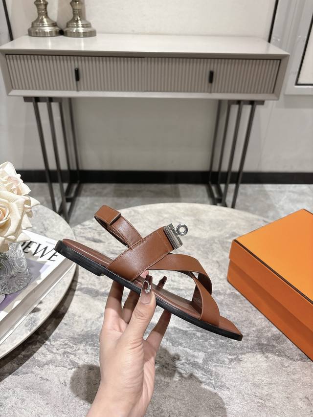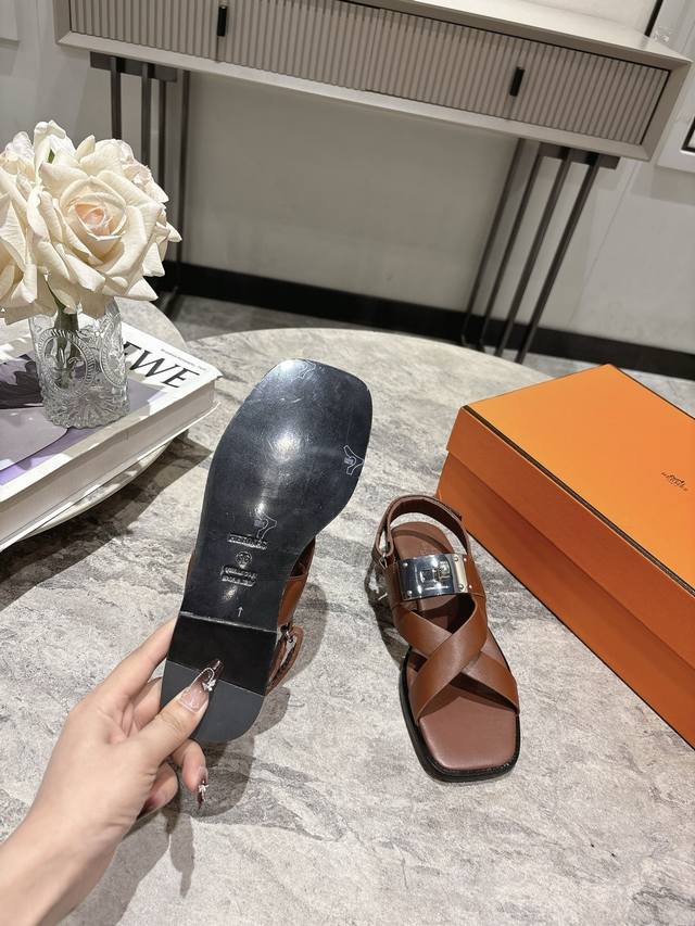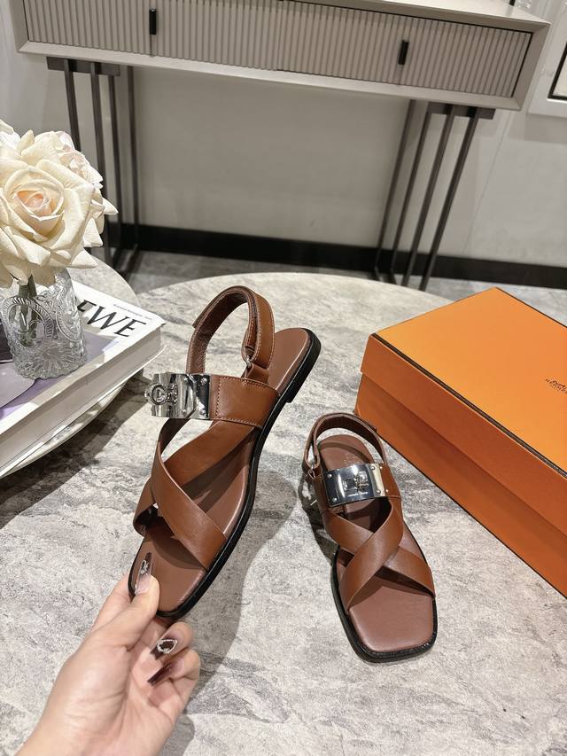 400 Herme*S爱马仕春夏最新五金扣凉鞋 柜柜超难配货 经典的方头版型 搭配极具辨识度五金 上脚超级百搭好看时髦 超多明星网红种草 春夏必备 随意舒适高级感 上脚超级舒适不勒脚 鞋面进口磨砂小牛皮 混种羊皮里 意大利真皮大底 原版全套包装 Size:35-39(40定做不退换)