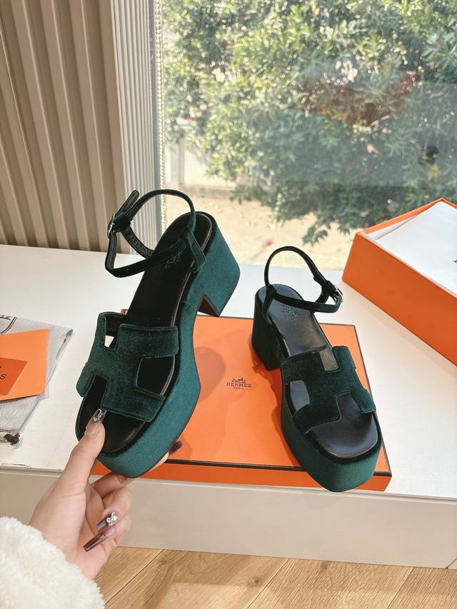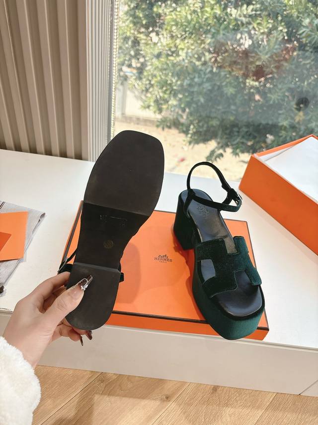 G038代购级别所见即所得g033Hermes爱马仕 2025 最新款大h厚底凉鞋