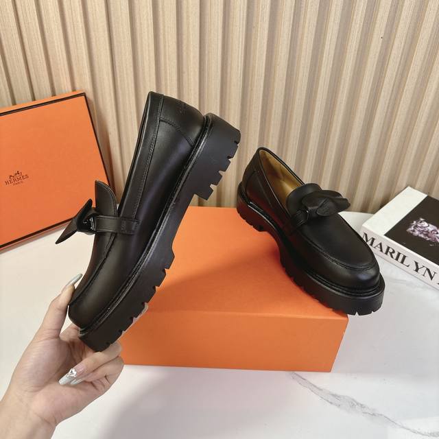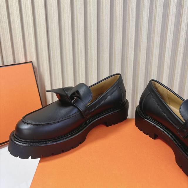 herme* H家新款爱马*Icone牛皮乐福鞋单鞋