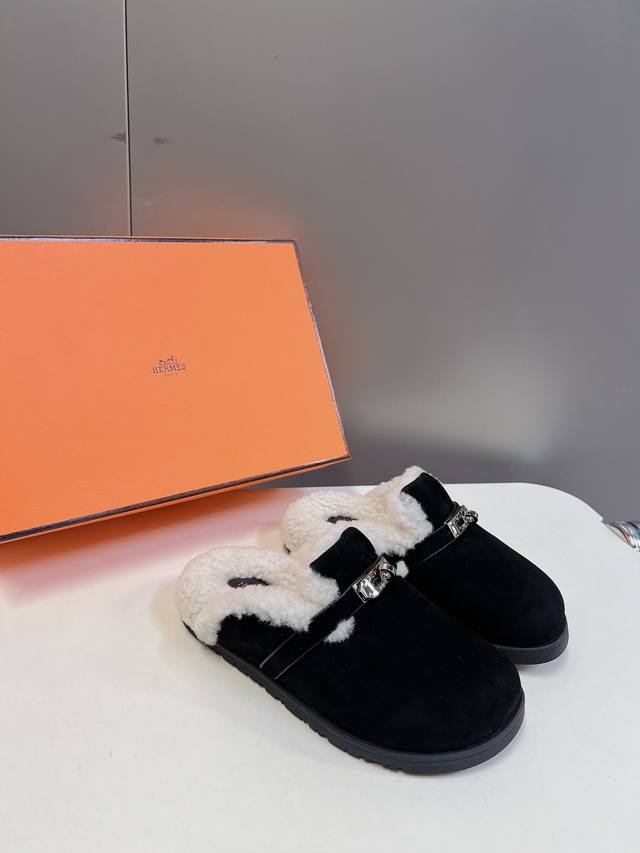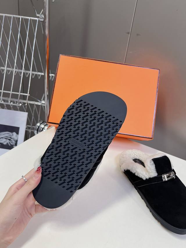 / Hermes爱马仕最新秋冬Kelly扣勃肯毛拖 超级百搭好看时髦 超多明星网红种草 秋冬必备 随意舒适高级感 鞋面:进口羊京面牛皮 内里:进口羊毛里 垫脚:迸口