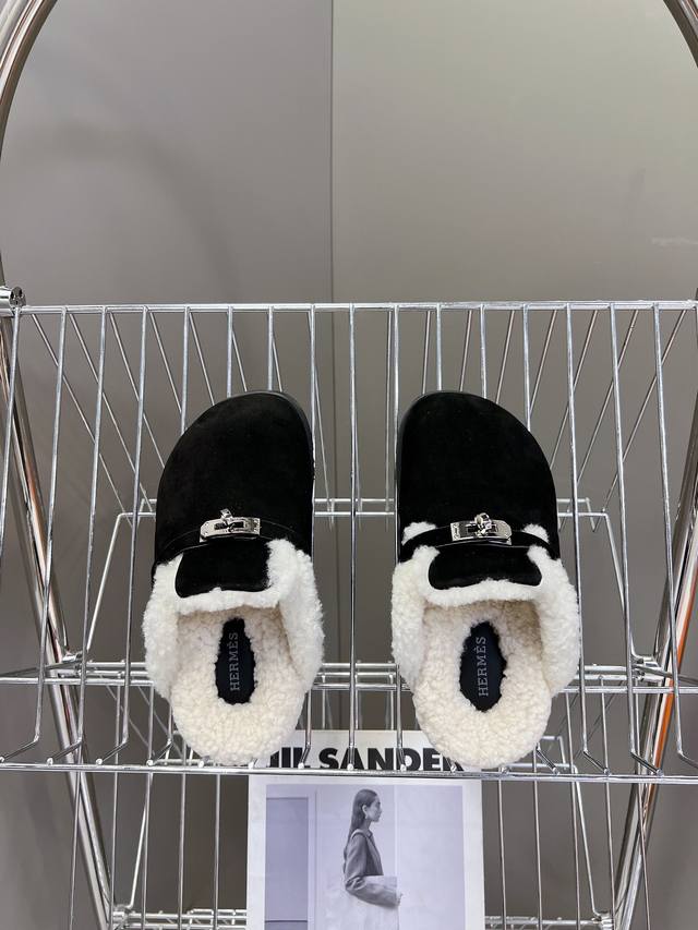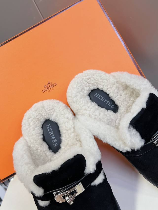 Hermes爱马仕最新秋冬Kelly扣勃肯毛拖