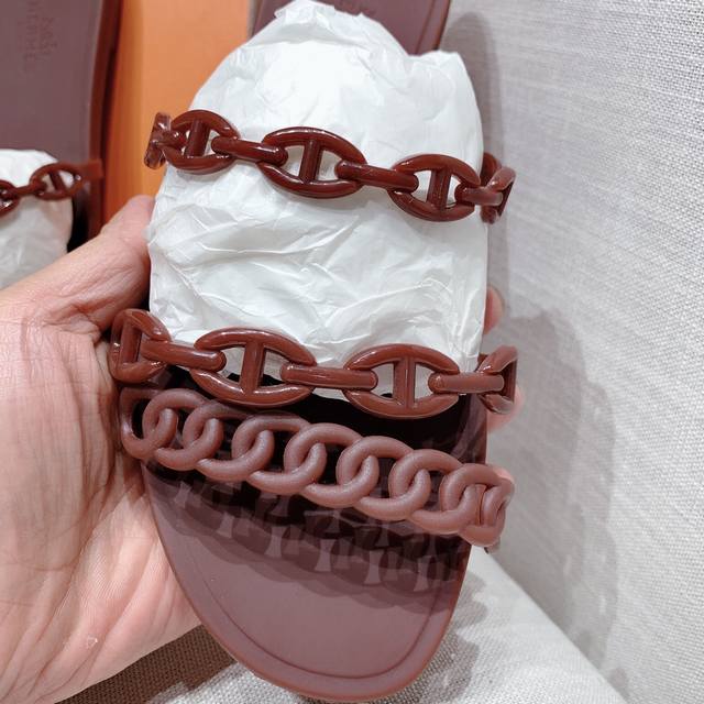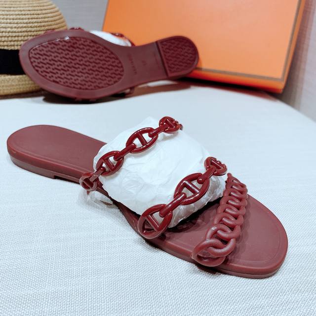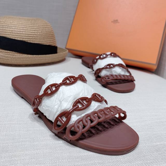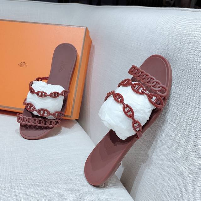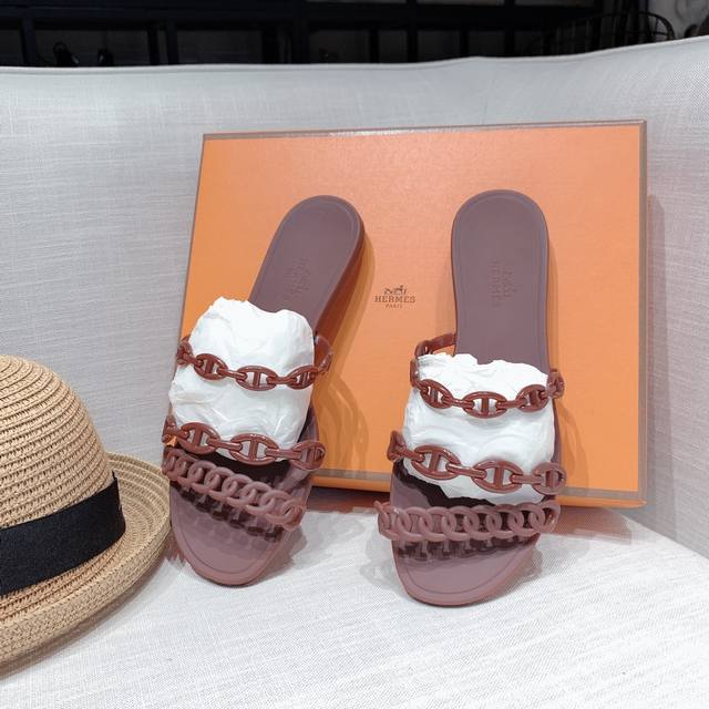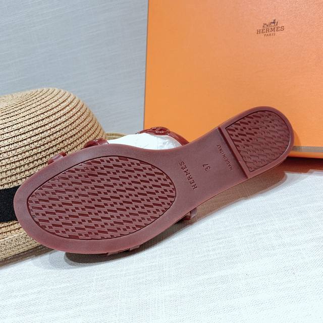 Hermes-爱马仕 三带 七个颜色,每个色都很经典 Pvc国际标准 百搭高颜值拖鞋 非常好看 一年四季都可以穿 放在家里真的很高逼格 出去旅行必备 不占地方关