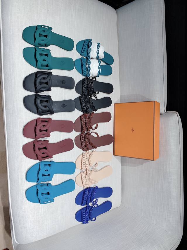/ Hermes-爱马仕 三带 七个颜色,每个色都很经典 Pvc国际标准 百搭高颜值拖鞋 非常好看 一年四季都可以穿 放在家里真的很高逼格 出去旅行必备 不占地方关