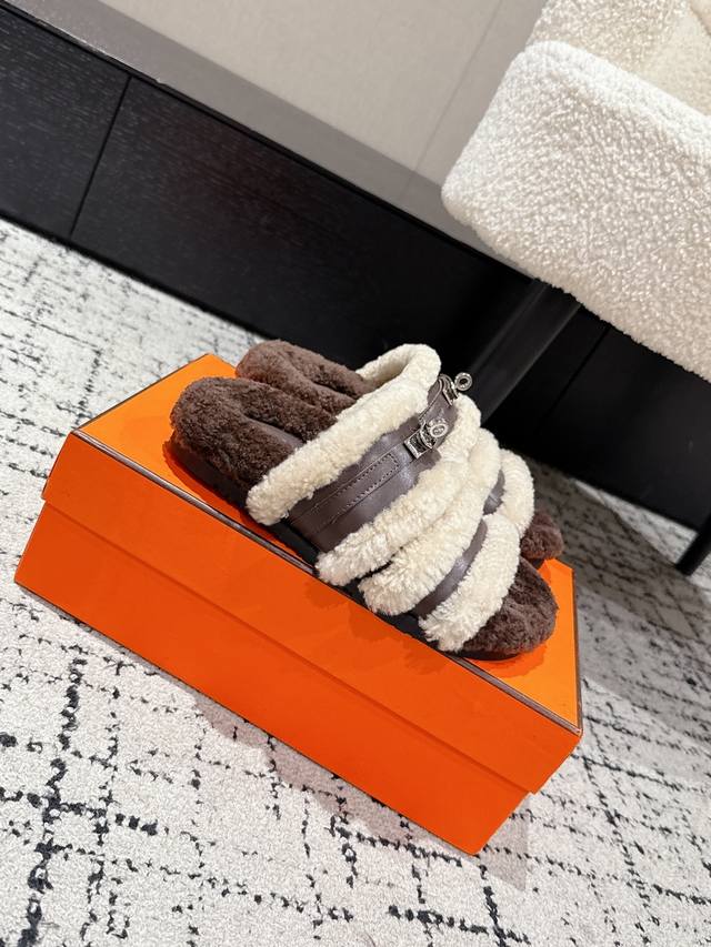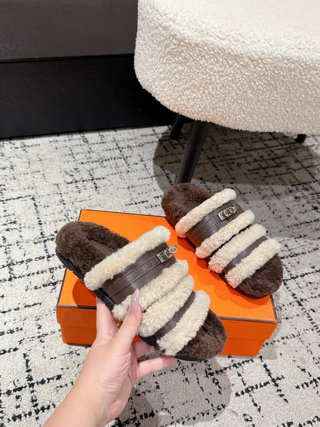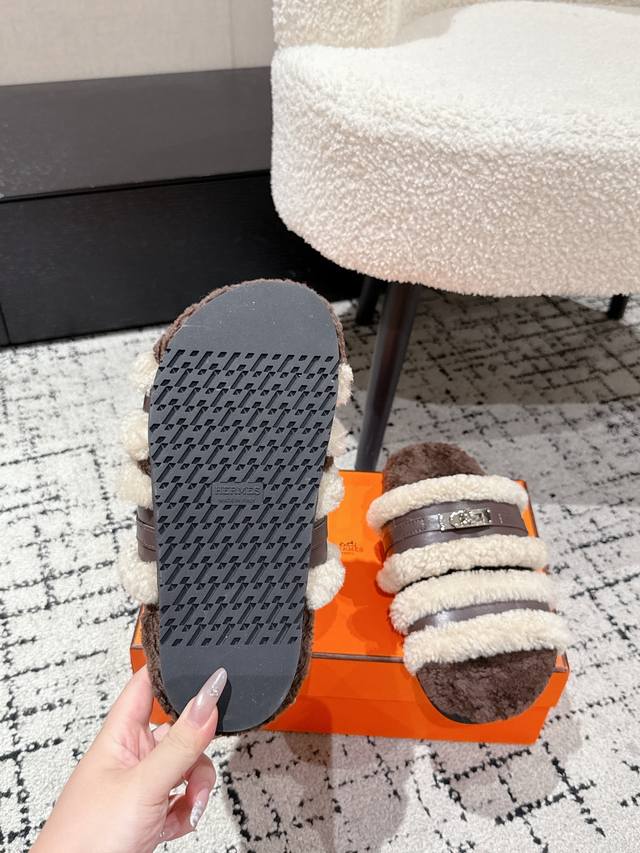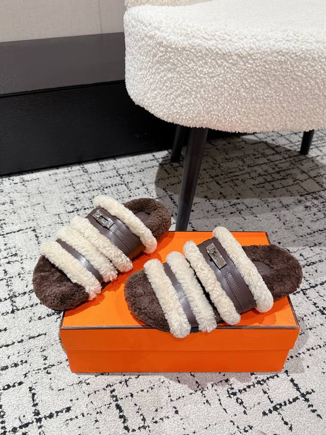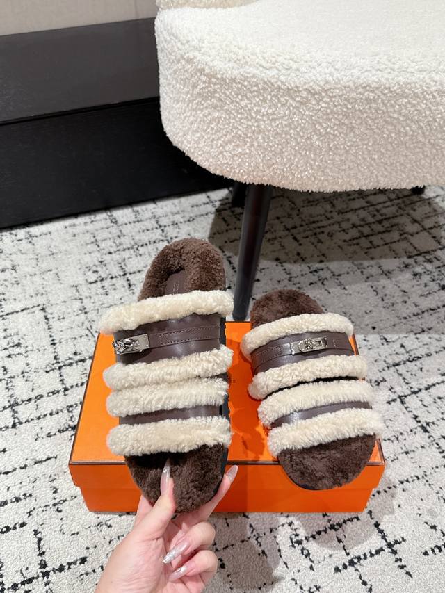 Hermes爱马仕 25 最新秋冬Kelly 毛毛拖