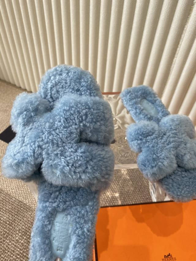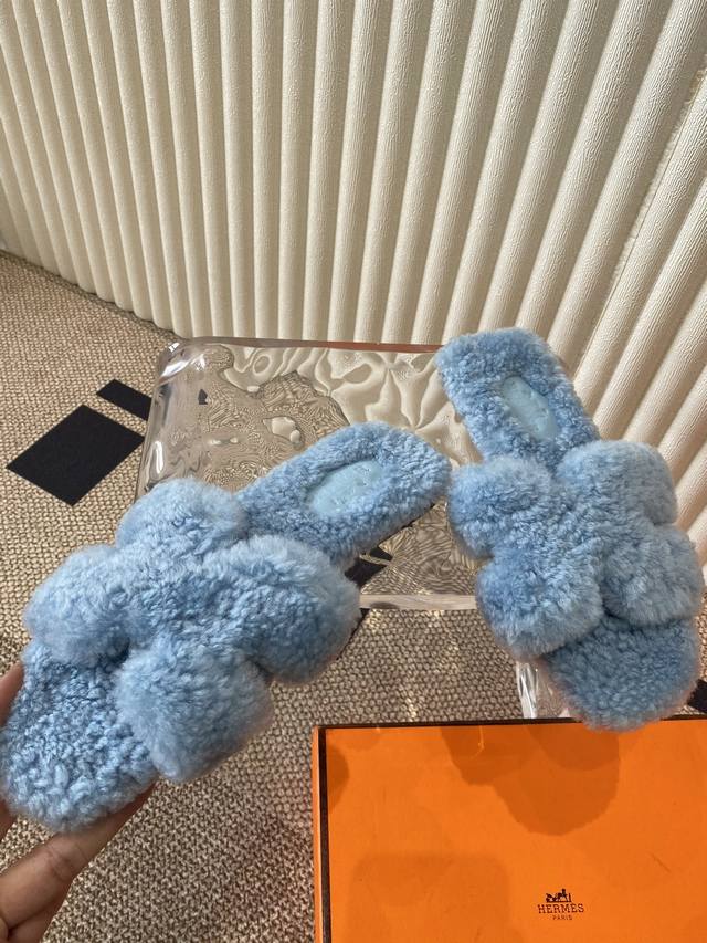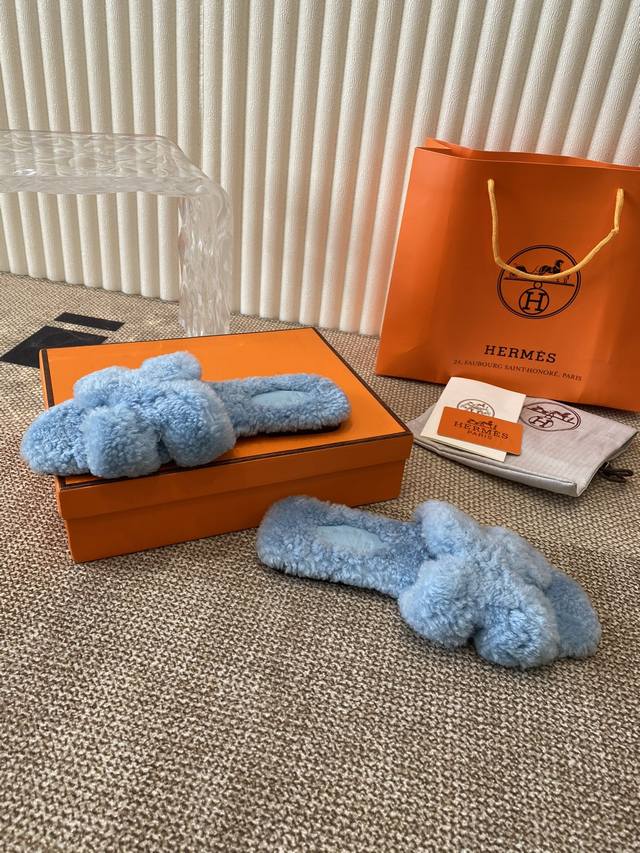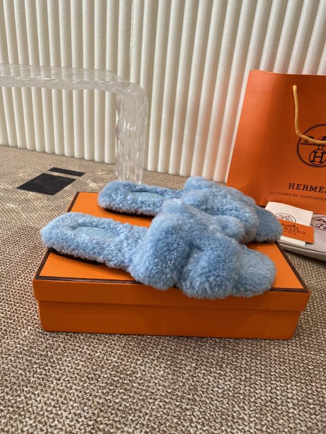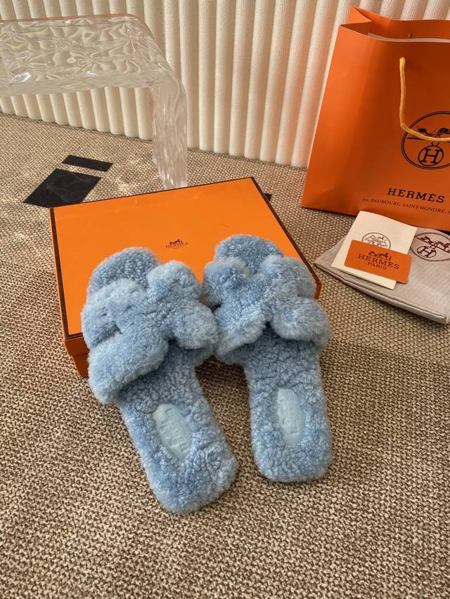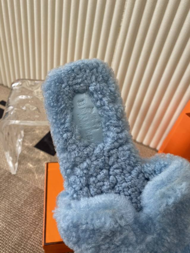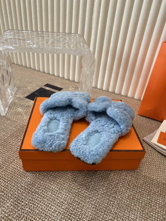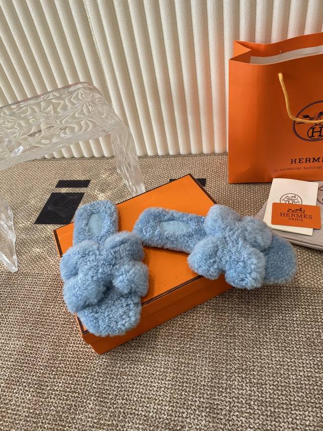 Hermes 爱马仕平底毛拖 爱马仕爆款火热上线,做工升级版,高品质! 时尚潮流小羊毛H拖秋冬款平底毛拖 码数:35-41