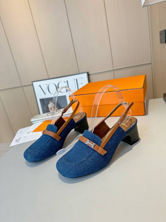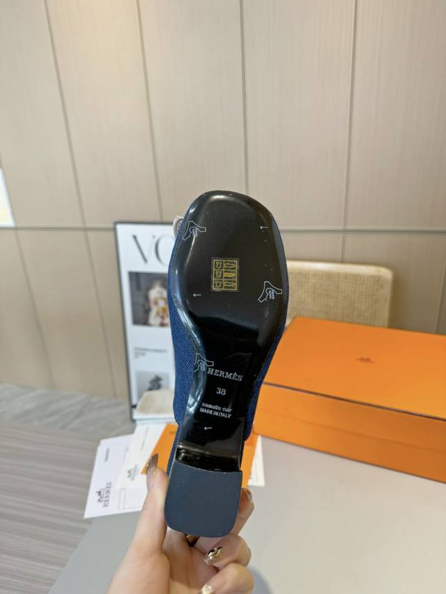 / Hermes 爱马仕 24春季H家最新上市包头穆勒拖鞋凉鞋,潮爆了 上脚非常大气显瘦 精致好穿 鞋面:进口羊皮/原版布 内里:羊皮 跟高:5㎝ 大底:意大利真皮