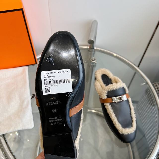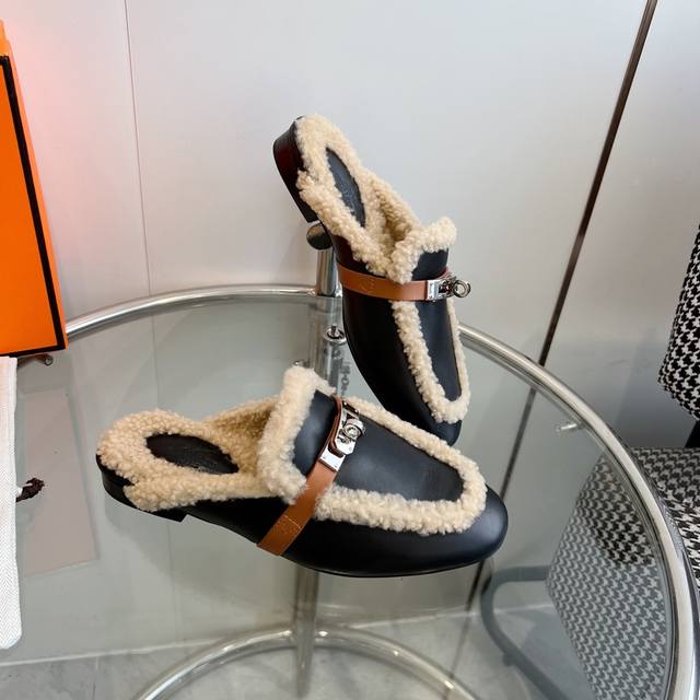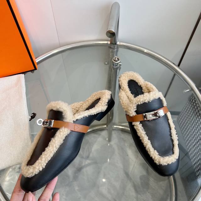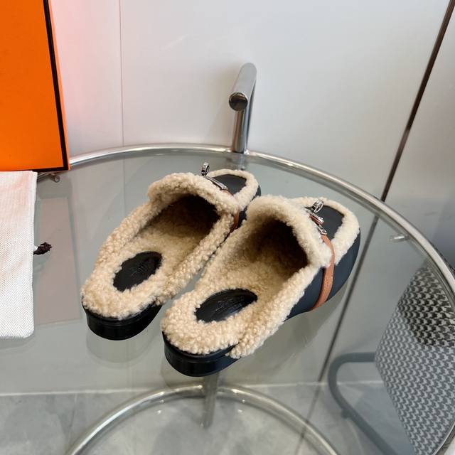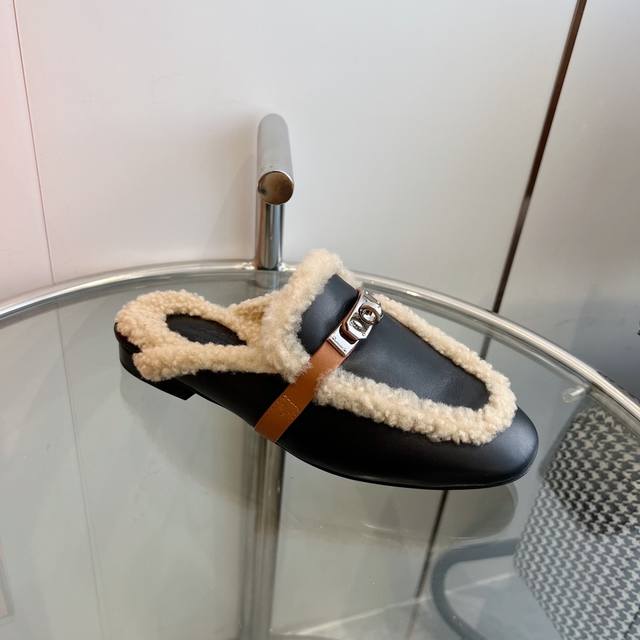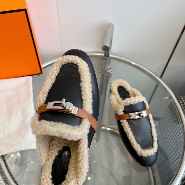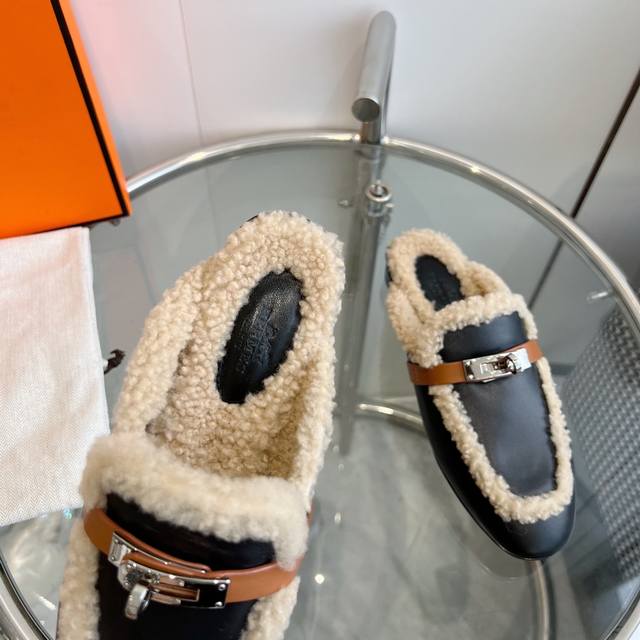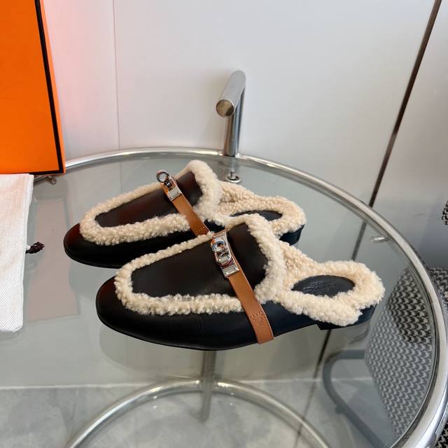 Hermes 爱马仕-0Z穆勒鞋kelly扣泰迪毛毛拖鞋