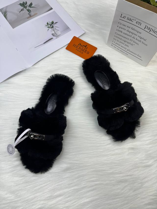 皮毛一体拼接羊皮,搭配经典镀钯Kelly扣