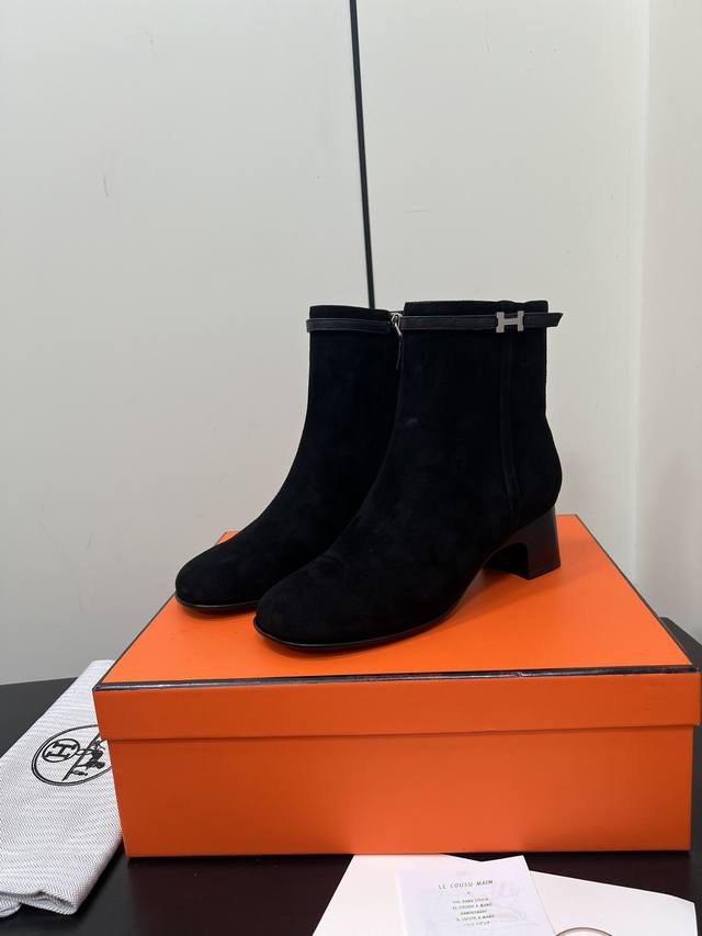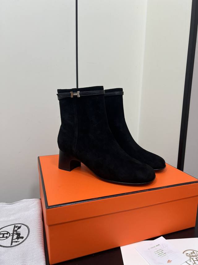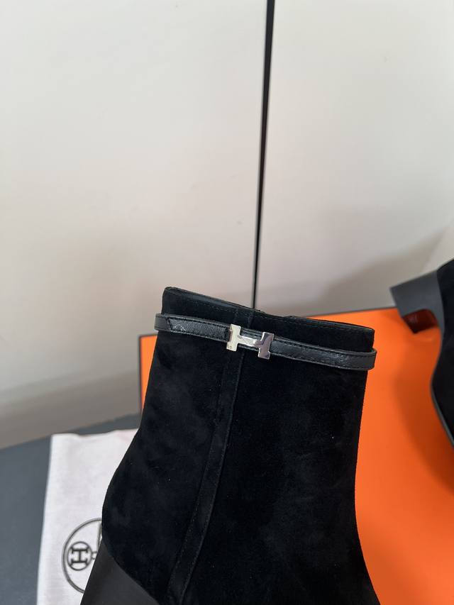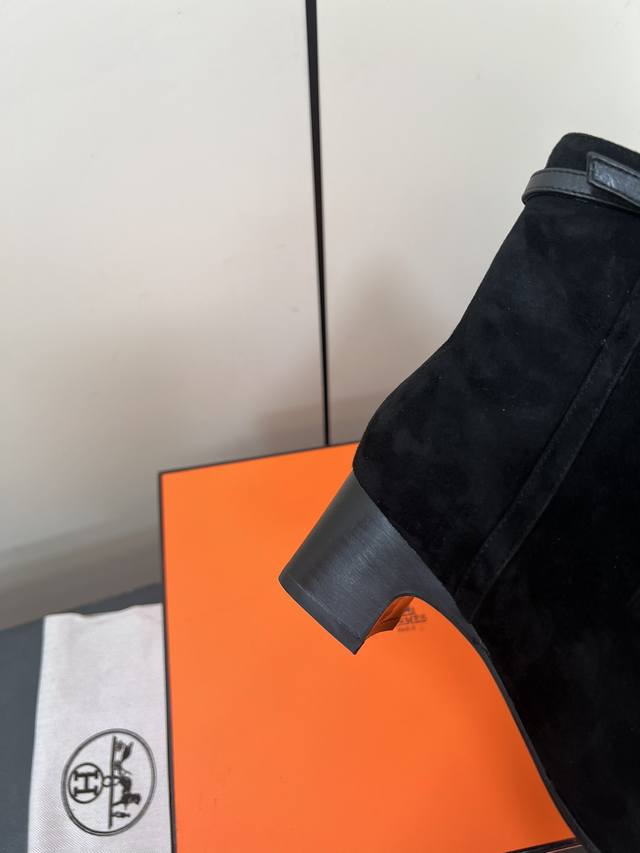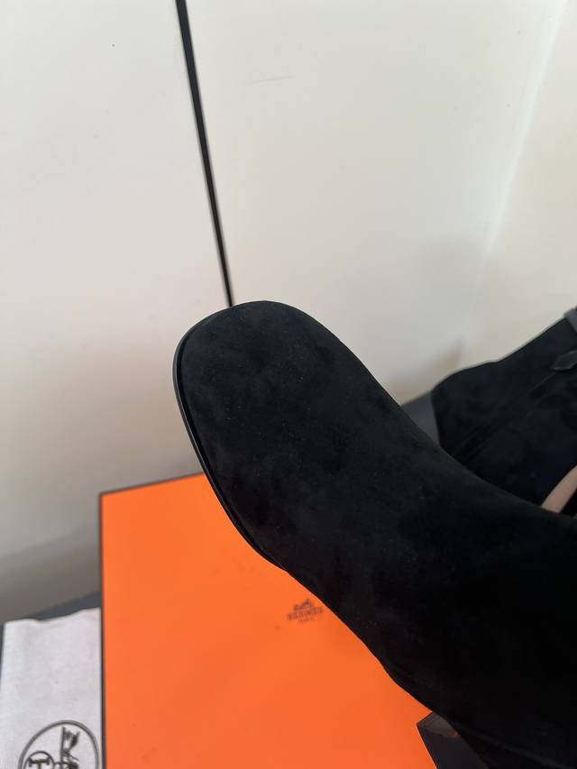 / hermes H家新款爱马仕圆头高跟踝靴机车短靴 鞋面进口进口头层纳帕牛皮,内里牛皮,垫脚混种羊皮,意大利真皮大底 跟高:约4.5厘米 筒高:约16厘米 Siz