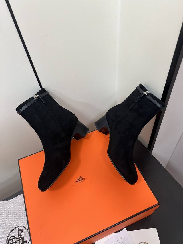 hermes H家新款爱马仕圆头高跟踝靴机车短靴