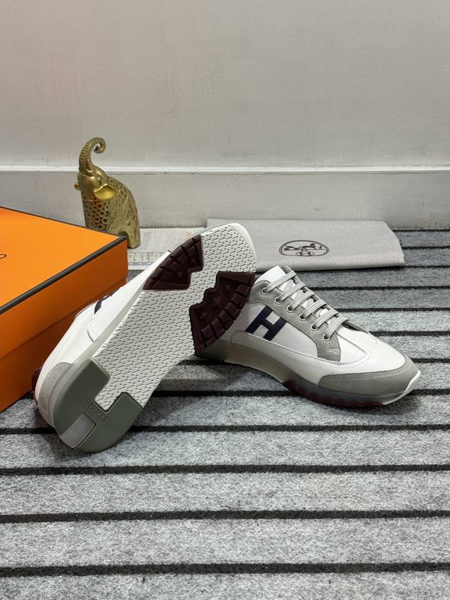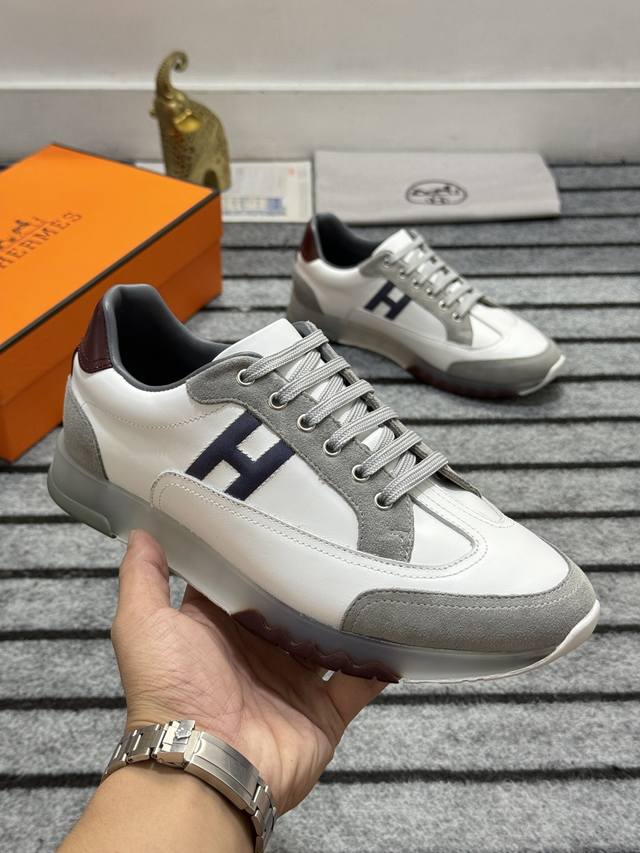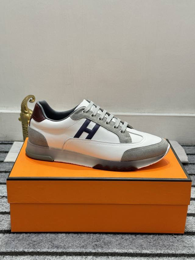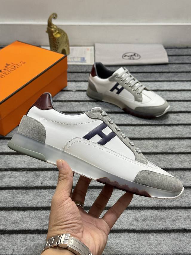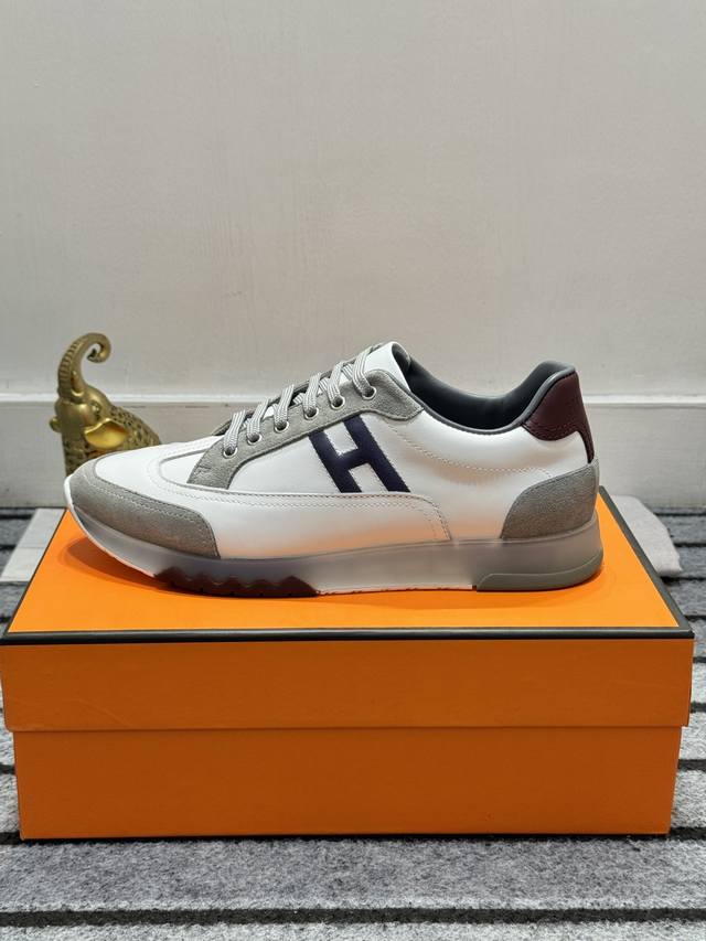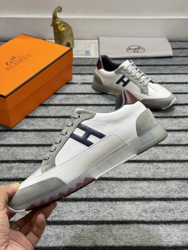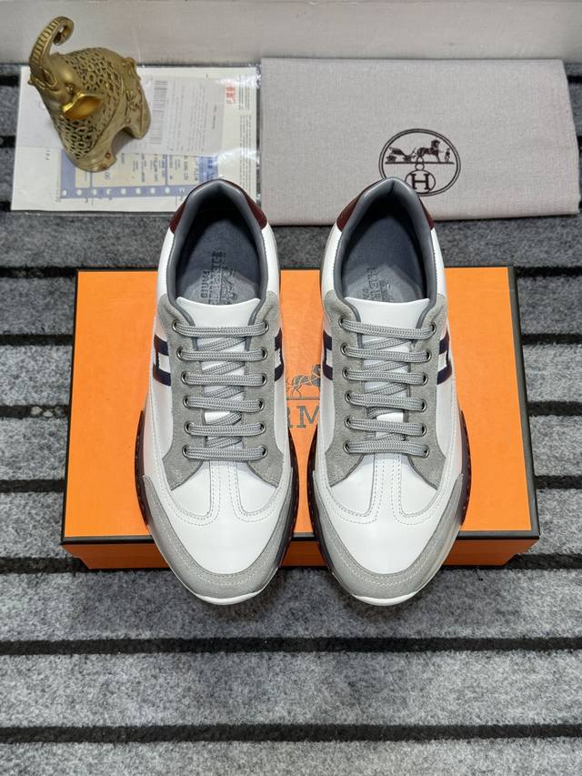 商品商标:Hermes 爱玛仕 休闲系带板鞋 正码码数: 38-44 45订做不退换 商品材料:精选 3D打印牛皮鞋面 牛皮内里 原版大底