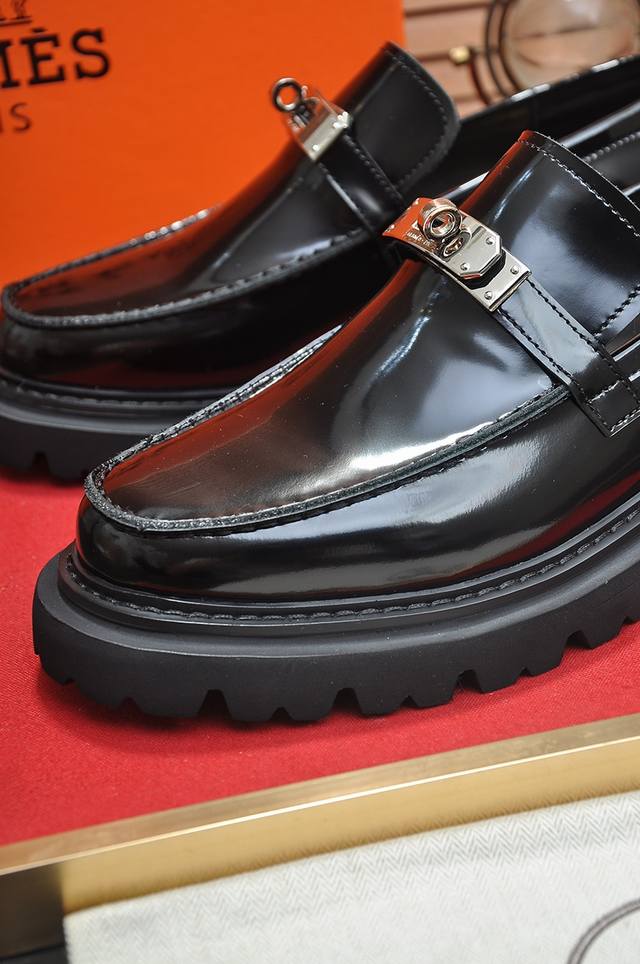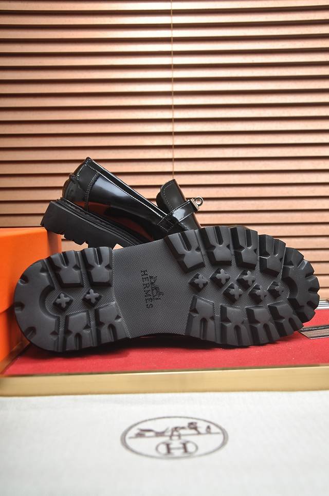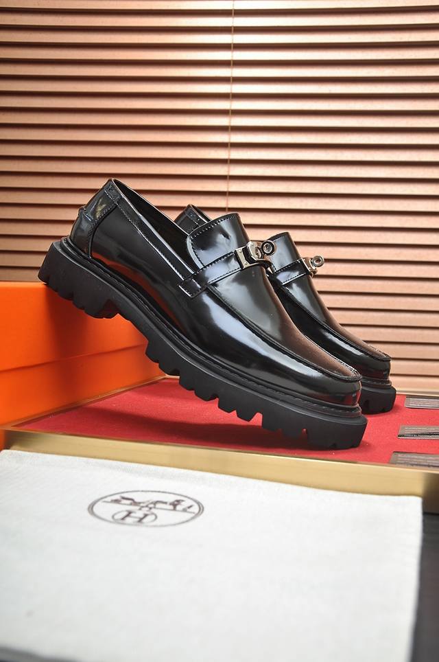 出厂价 爱马仕 Hermes 高端牛里 新款 Hermes 顶级版本 经典休闲皮鞋!选用进口原版牛皮,内里头层舒适牛皮内里!原版耐磨橡胶发泡大底!高品质精品!码数38-45 45定做