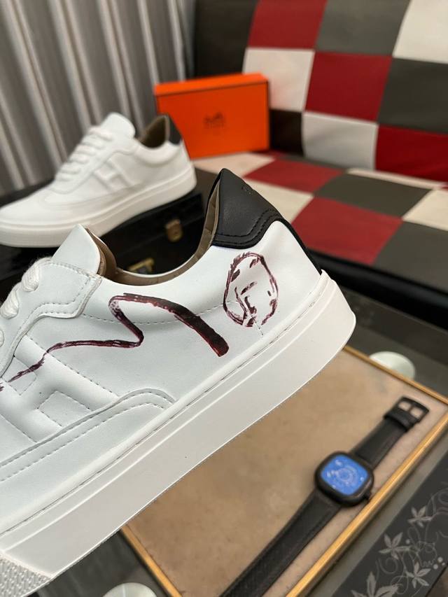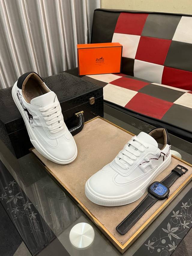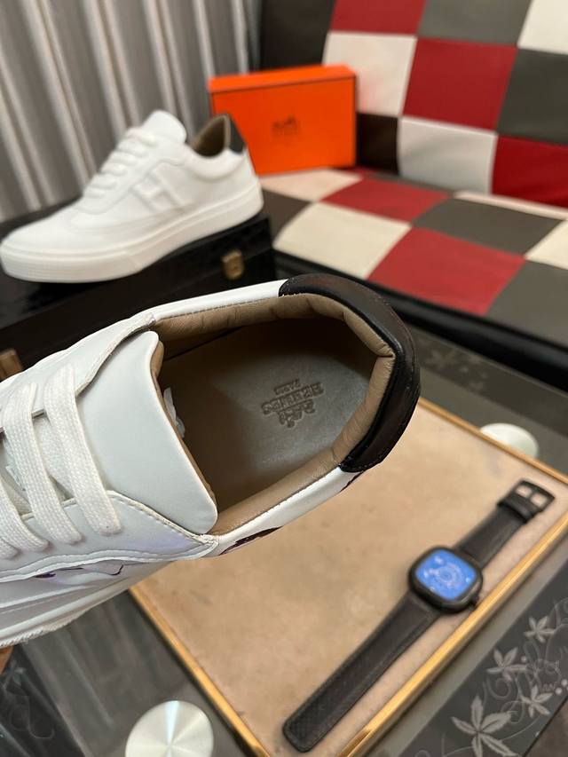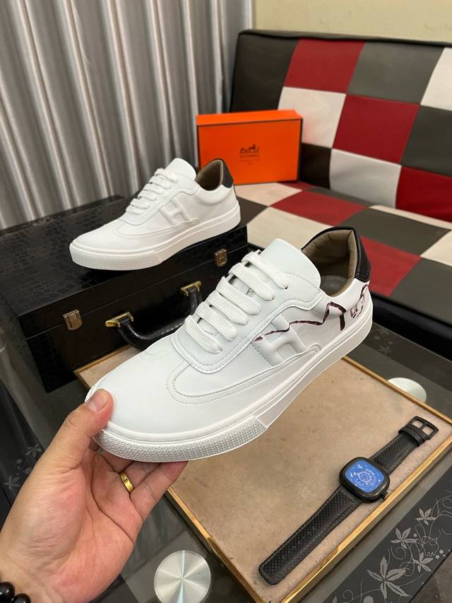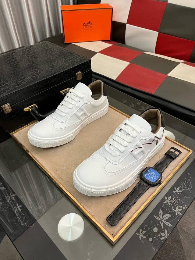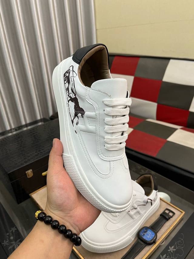 出厂价: 爱马仕bouncing运动鞋,男士休闲运动鞋,鞋面牛皮拼接高端网布打造,进口材质,质感十足,轻盈鞋底装饰撞色图案,打造百搭时尚风格 Size:38-44