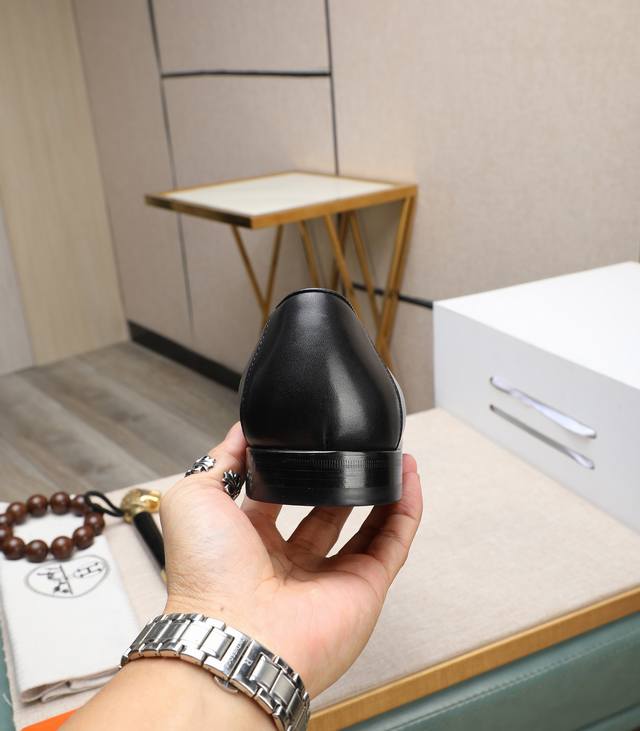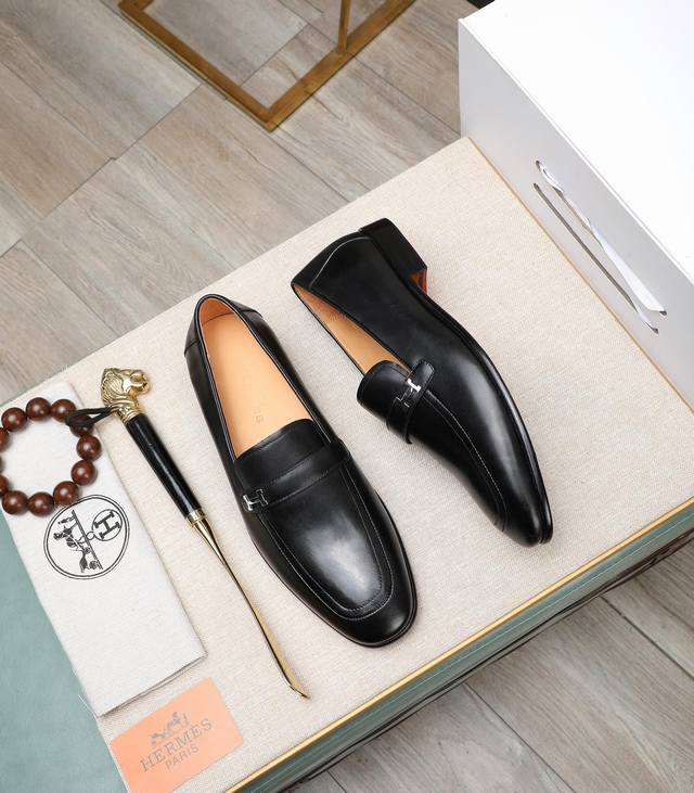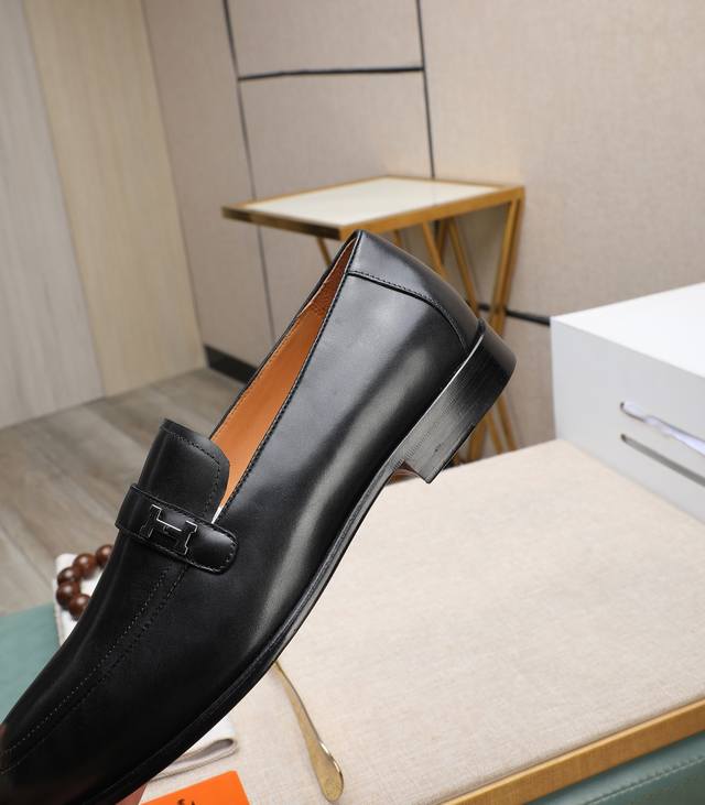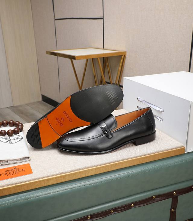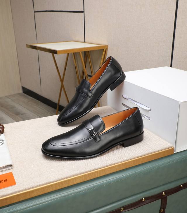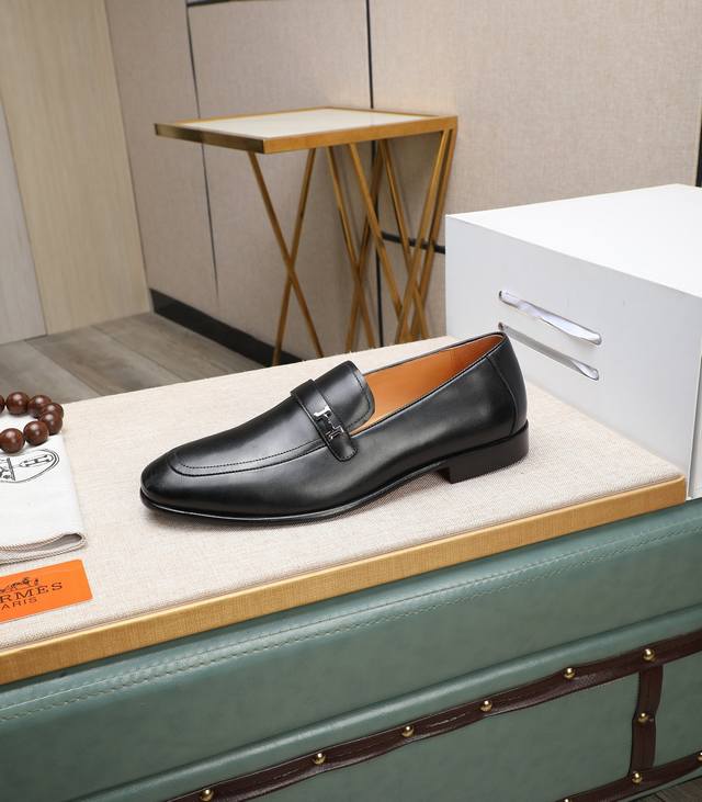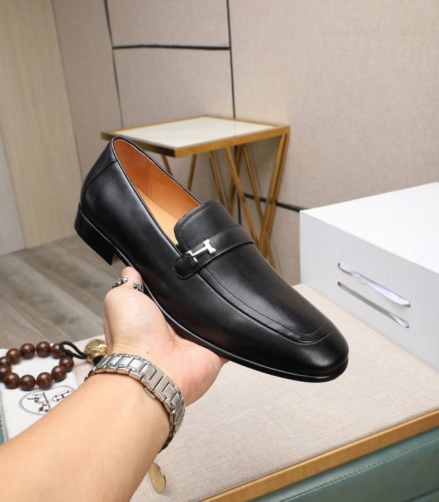 出厂价 顶级版本 原版真皮大底 品牌:Hermès 爱马仕 标准码:男码39-44 38、45可以定做 等级:官网同款 原单品质材料:原版柔软小牛皮 水染牛皮内里 原版意大利真皮大底款式类别:男士时尚 正装休闲皮鞋 套脚款男鞋系列 年轻时尚 欧美潮流 英伦风格 颜色:多款可选 专柜包装
