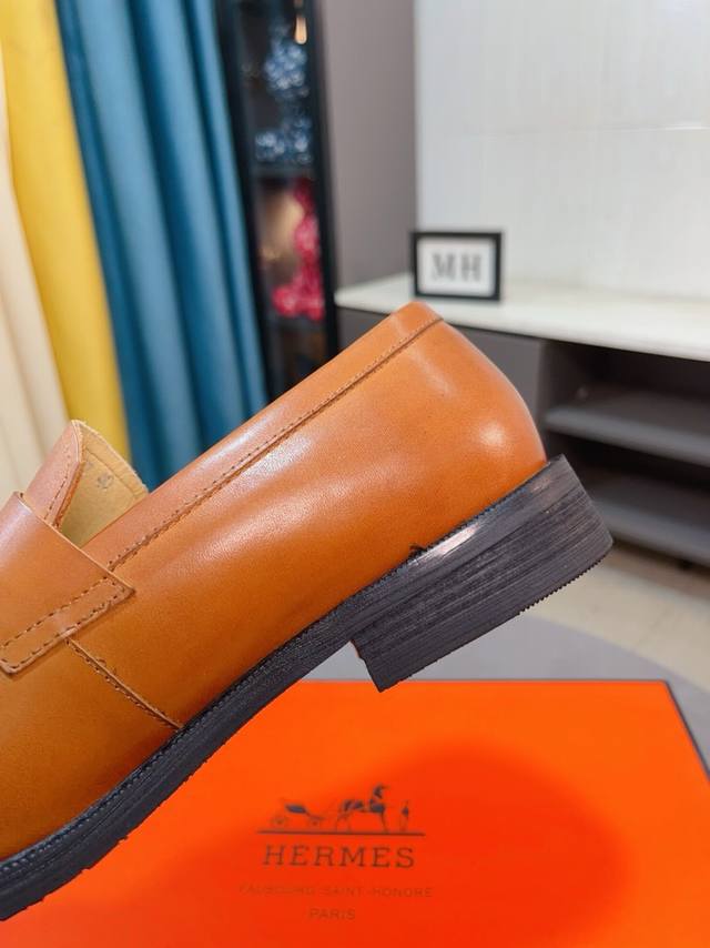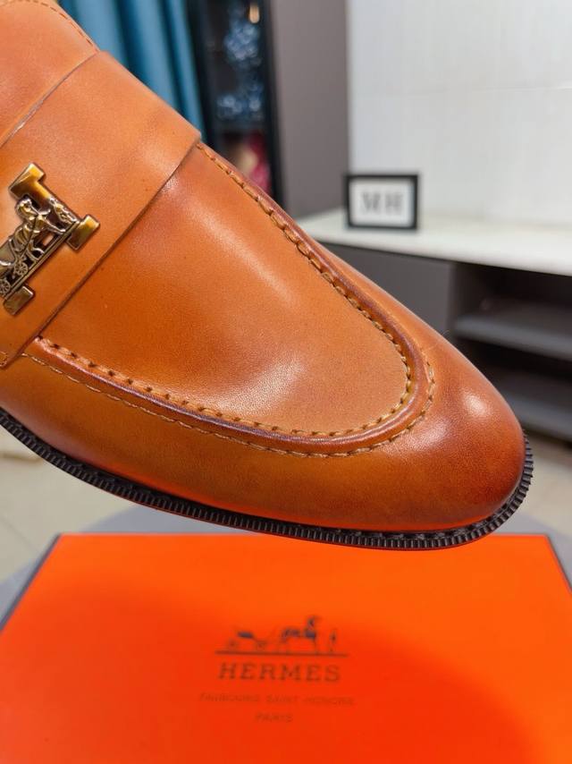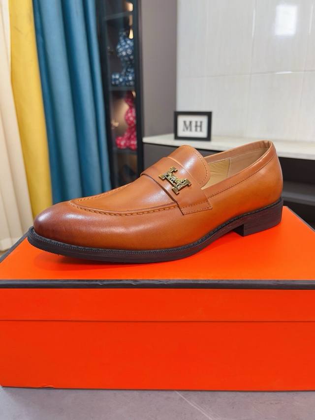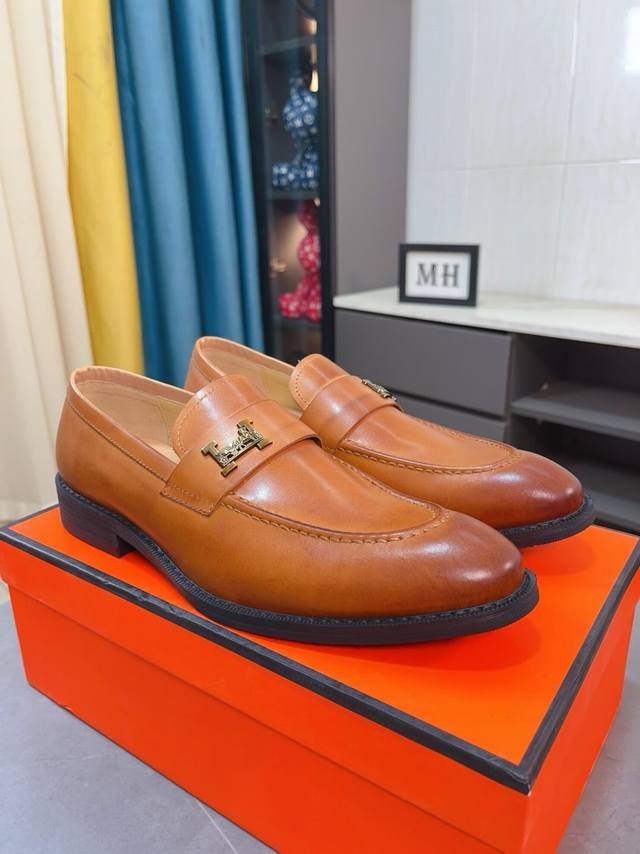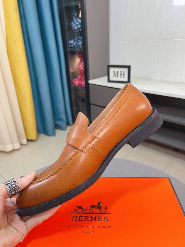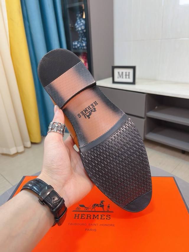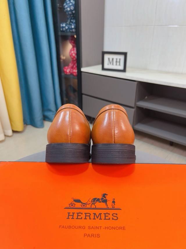 / 出厂价 HERMES 爱马仕商务皮鞋,原厂配置、原版进口牛皮鞋面+奢华五金logo+全进口原版定制羊皮内里,鞋底:橡胶耐磨大底高难度工艺,原厂跟单货,高品质码数